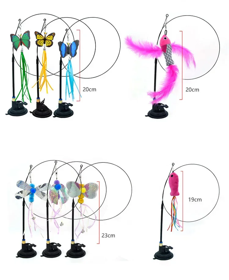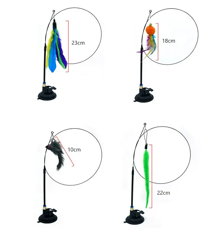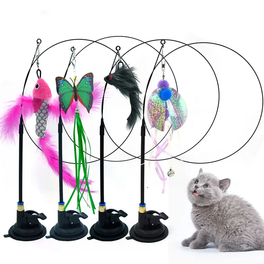 Juguetes Divertidos para gatos, ventosa de alambre de acero, palo interactivo para gatos, ratón, pluma, gatito, ejercicio de caza, suministros de productos para mascotas
