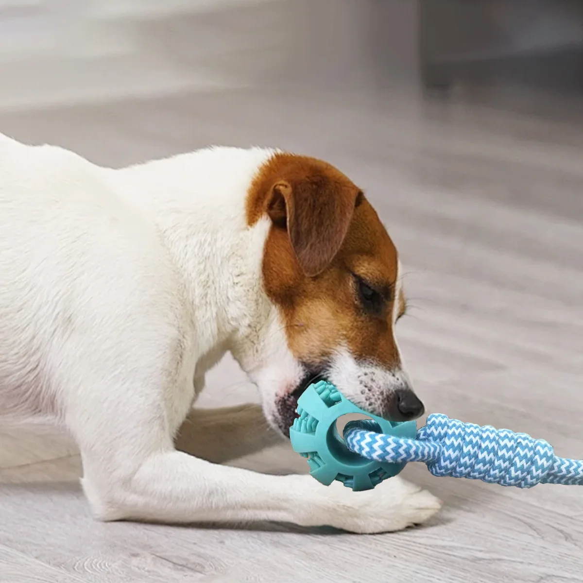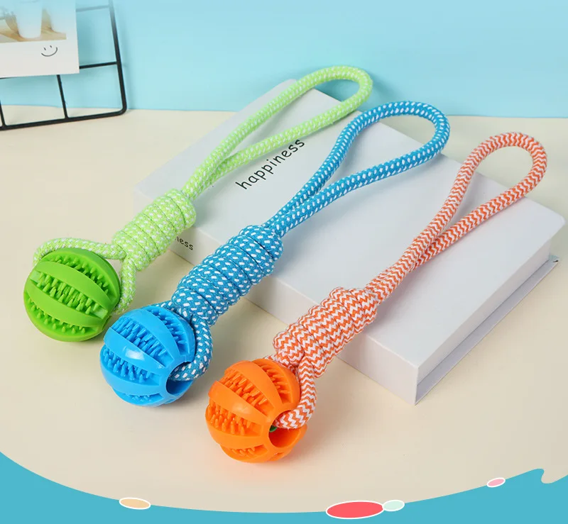 Juguetes duraderos de cuerda para perros, pelota en cuerda, juguete interactivo para perros Tug of War, juguete de recompensa para perros medianos y pequeños, juguete para masticar de goma para perros
