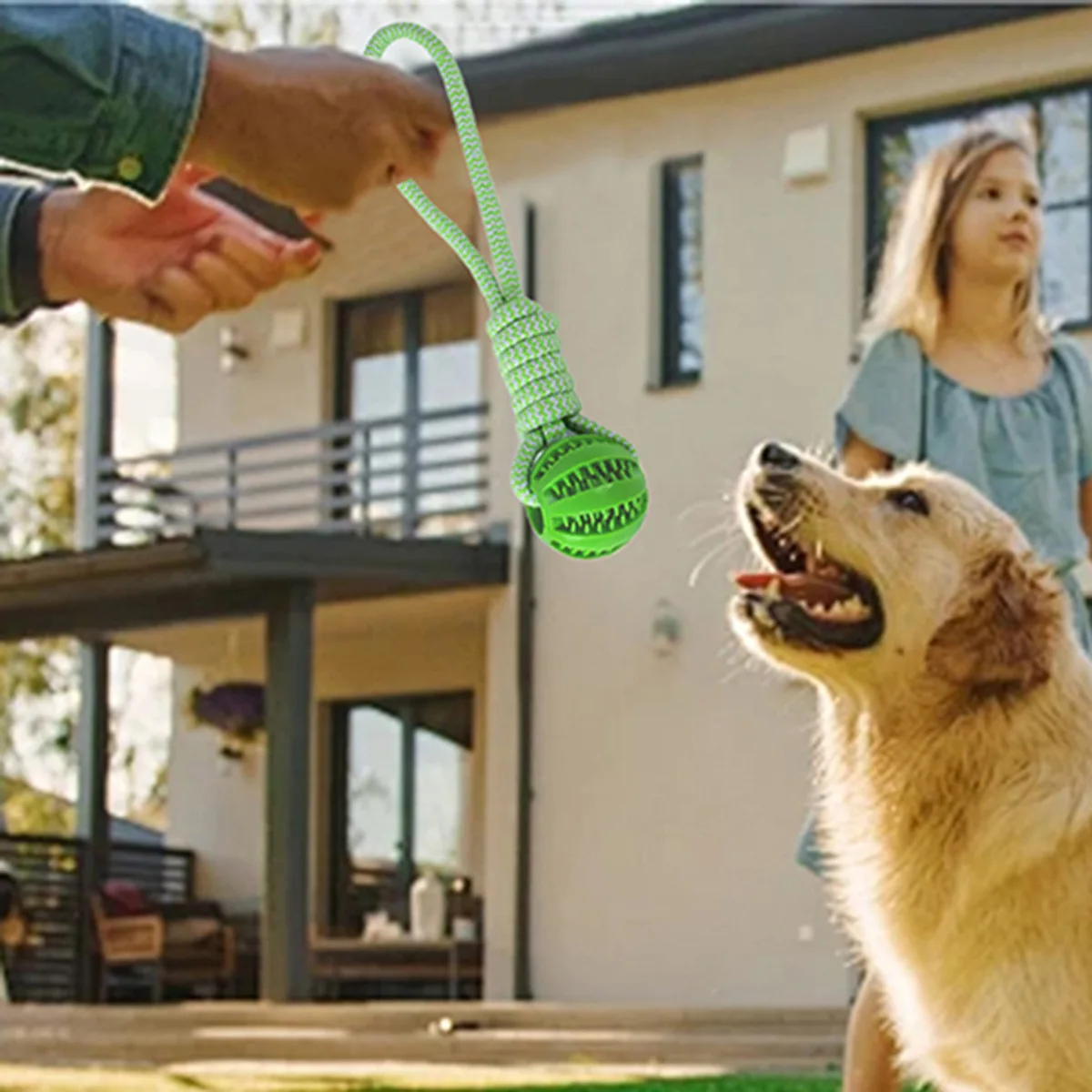 Juguetes de cuerda para perros Pelota en cuerda, Pelota de entrenamiento con lanzador de cuerda para buscar, Juguete de perro de tira y afloja Ejercicio interactivo y juguete de recompensa para razas medianas y pequeñas, Juguete de goma duradero para masticar perrosPelota en una cuerda para cansar a su perro: Diseñamos juguetes interactivos de cuerda para perros para uso y juego. Viene con una bola de colores brillantes para mantener a su perro ocupado. Puede ocultar golosinas en la pelota para el entrenamiento del perro, y es ideal para el ejercicio del perro.Juguete para perros al aire libre: use la cuerda como un lazo y lance la pelota extremadamente lejos. Cansa a su perro jugando a perseguir, buscar, tirar, saltar la cuerda y más en el parque, el patio trasero o cualquier entorno al aire libre.Cuerda y bola duraderas: hemos añadido una nueva cuerda más duradera que durará más tiempo.Juguete de buscar, perseguir y tirar: coloque la pelota del perro en una cuerda y juegue fácilmente a la persecución y a la búsqueda. Separe la pelota para jugar al tirón. Este juguete es realmente un juguete para perros multiusos. Juguete para tirar perros, juguete frisbee y lanzador de pelotas para perros.
