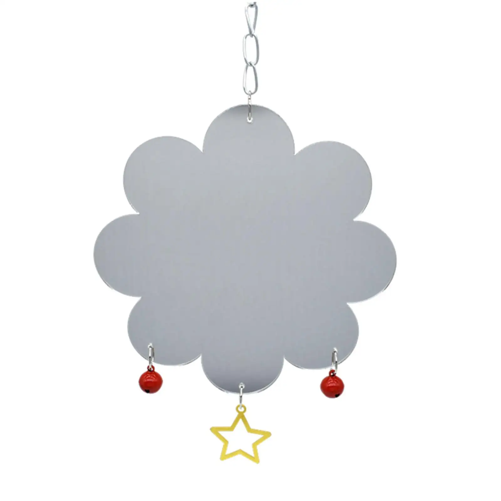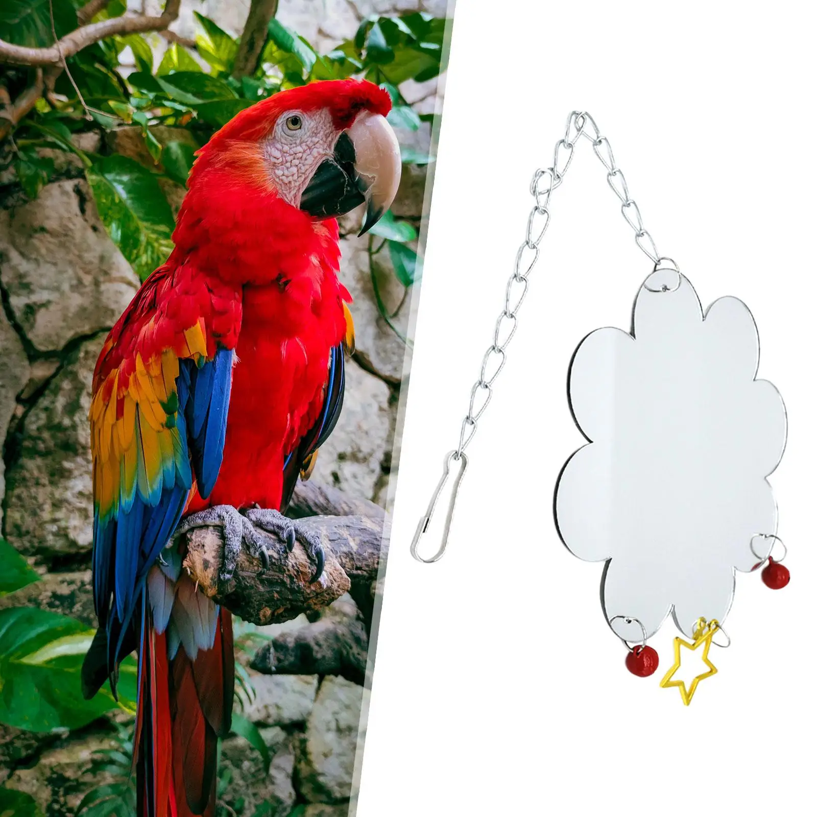 【Material confiable】: Nuestros juguetes de espejo de pollo con campanas están hechos de cadena de metal y espejo acrílico, fuertes y duraderos, seguros para que sus pajaritos jueguen y entrenen.