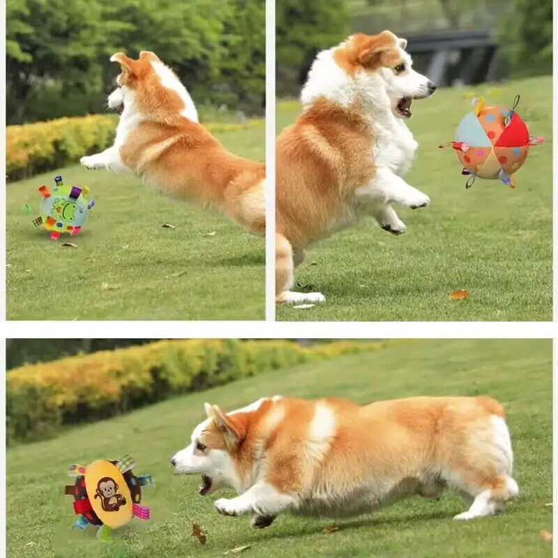 Juguetes de fútbol de peluche de 15cm con lengüetas de agarre para perros pequeños, campana integrada interactiva, pelota de entrenamiento para cachorros chirriantes, suministros para mascotas