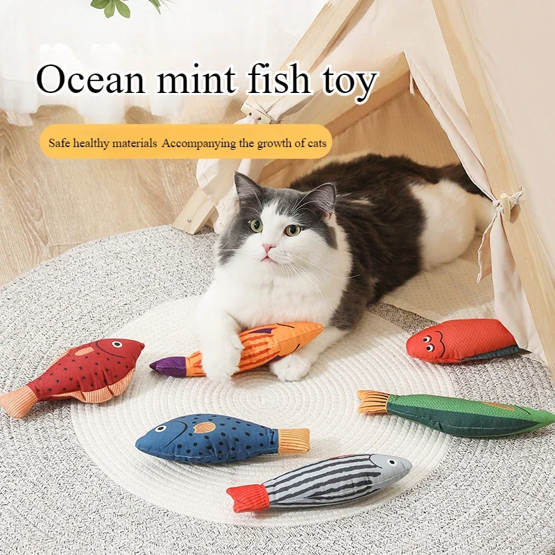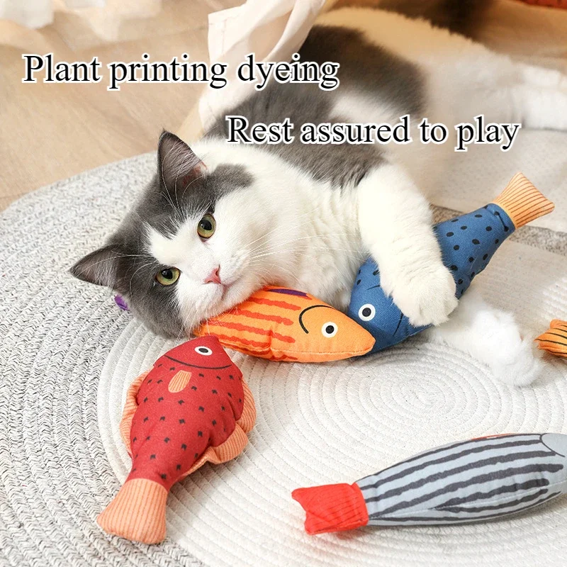 Juguetes para gatos, almohada de peluche, pez de juguete impreso, cuchillo grande, pez a rayas, serie en forma de pez, juguete con sonido, juguetes interactivos para gatos