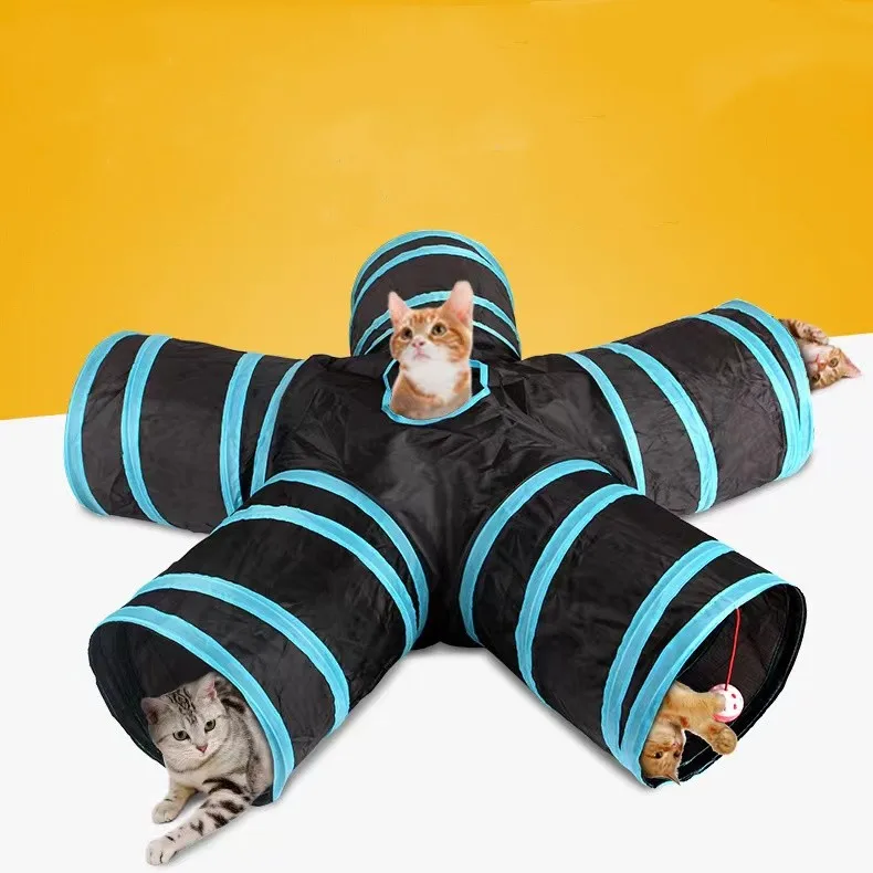 Juguetes para gatos de cinco canales, túnel de entrenamiento, tienda de campaña de papel con sonido, cama para gatos
