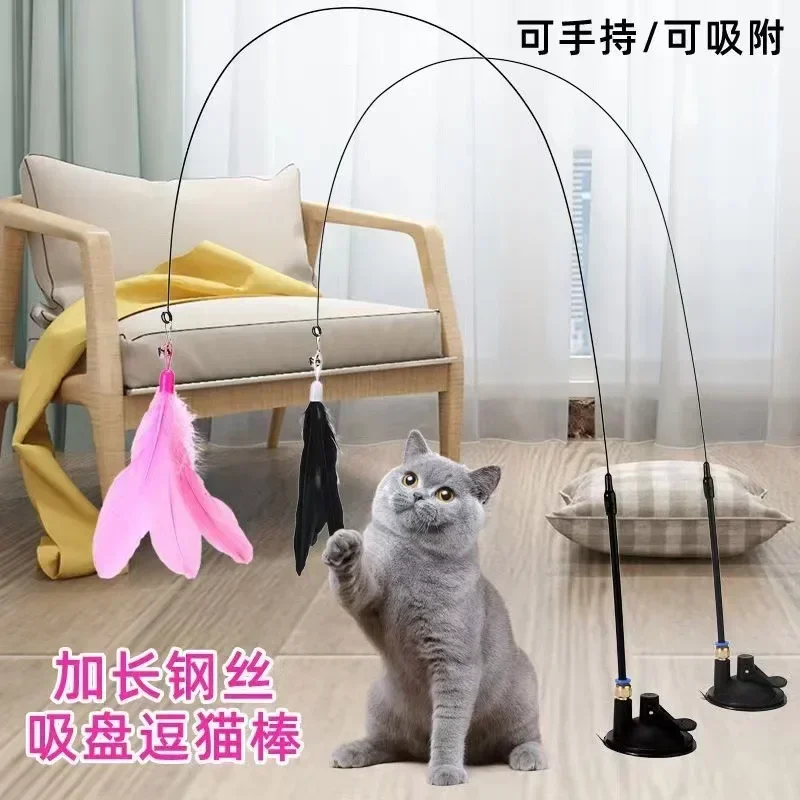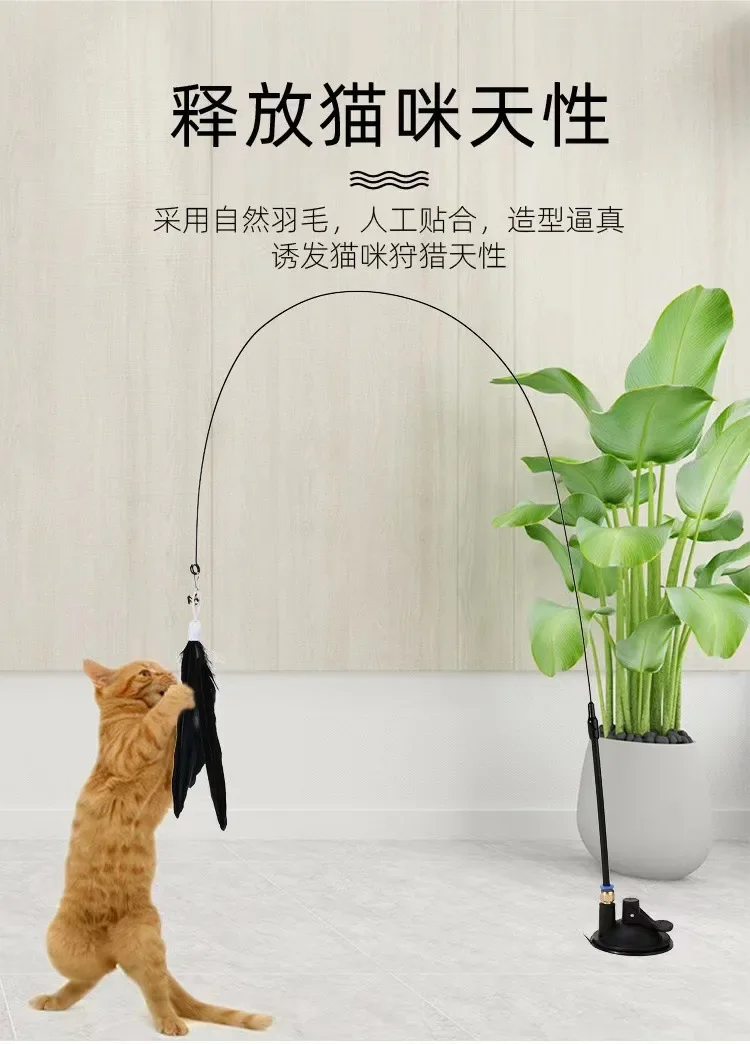 Juguetes para gatos interactivos divertidos varita de plumas para gatos ventosa bola plumas reemplazos con campanas para gatos de interior ejercicio de gatitos