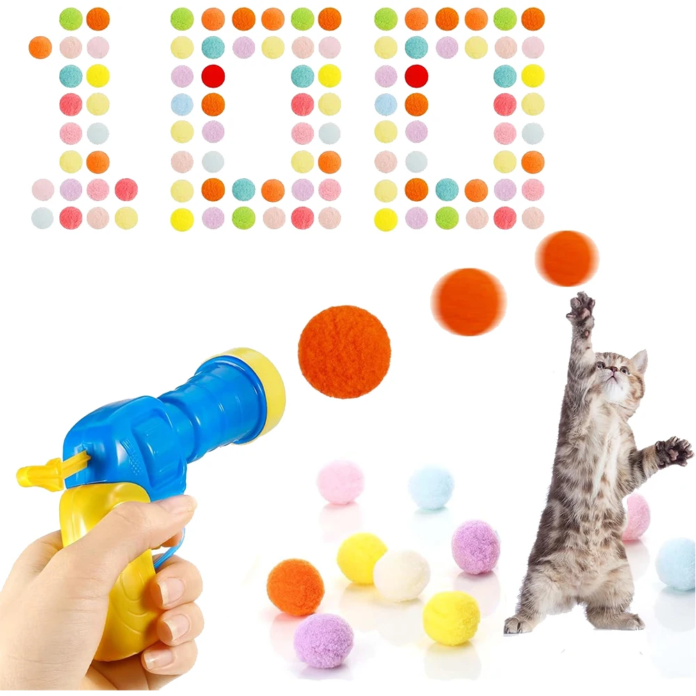Juguetes para gatos, juguete interactivo de entrenamiento de lanzamiento para mascotas, Mini juegos creativos de pistola de tiro, pelota de peluche elástica, suministros para mascotas