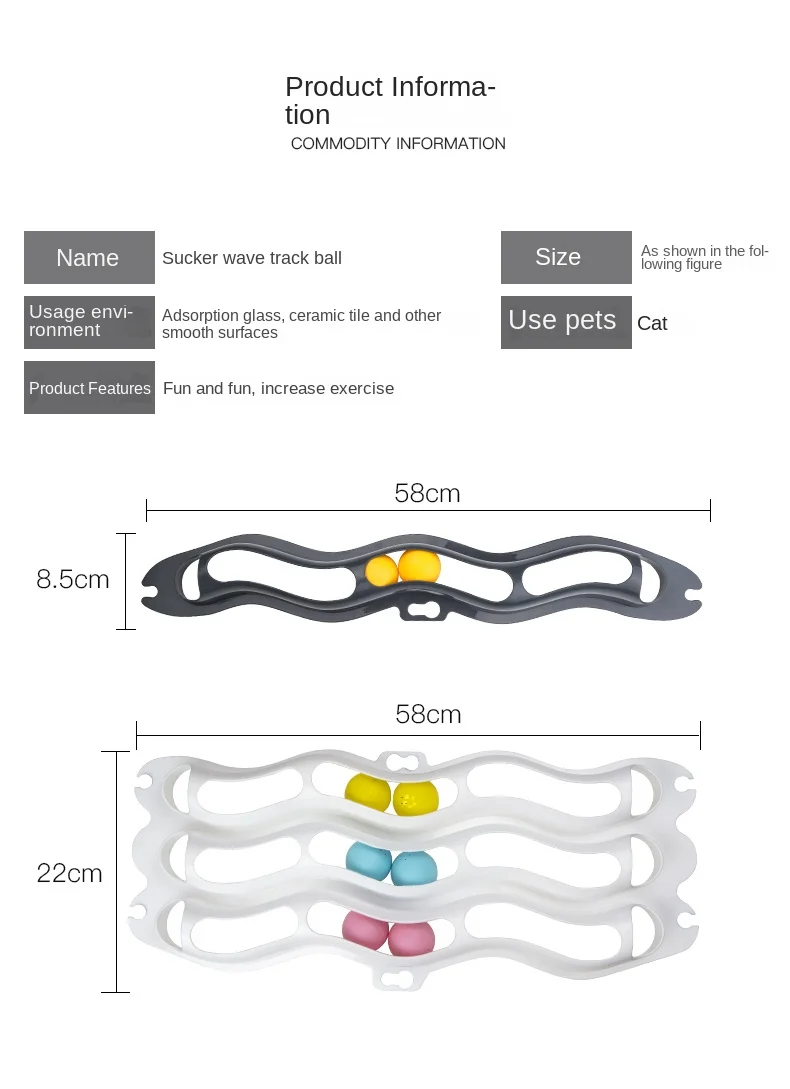 Característica: 1. A través de la llamativa pelota deportiva, el gato puede deslizarse sobre la gran abertura en la pista.2. Puede colgar en puertas de vidrio, ventanas o incluso en su nevera.