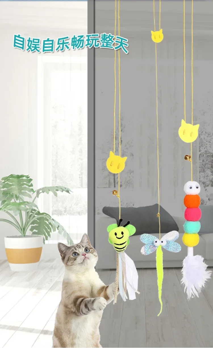 Juguetes para gatos, juguete interactivo tipo puerta colgante retráctil elástico para gatito, ratón, hierba gatera, cuerda para rascar, suministros para mascotas