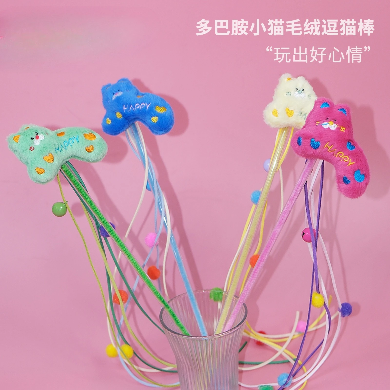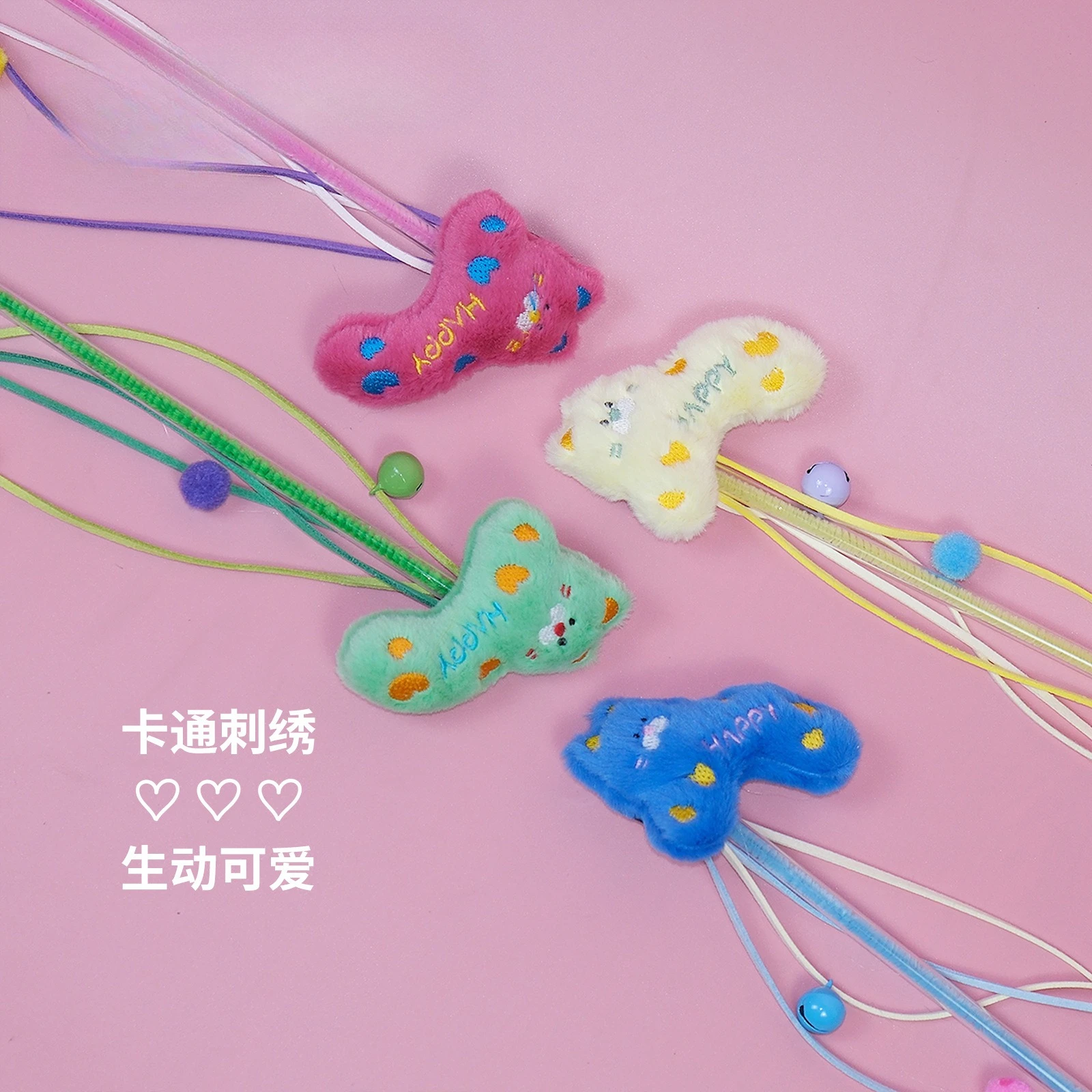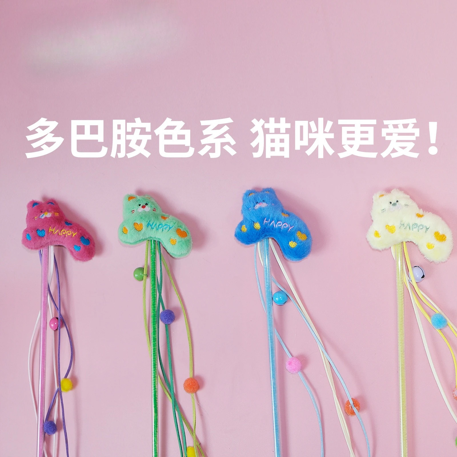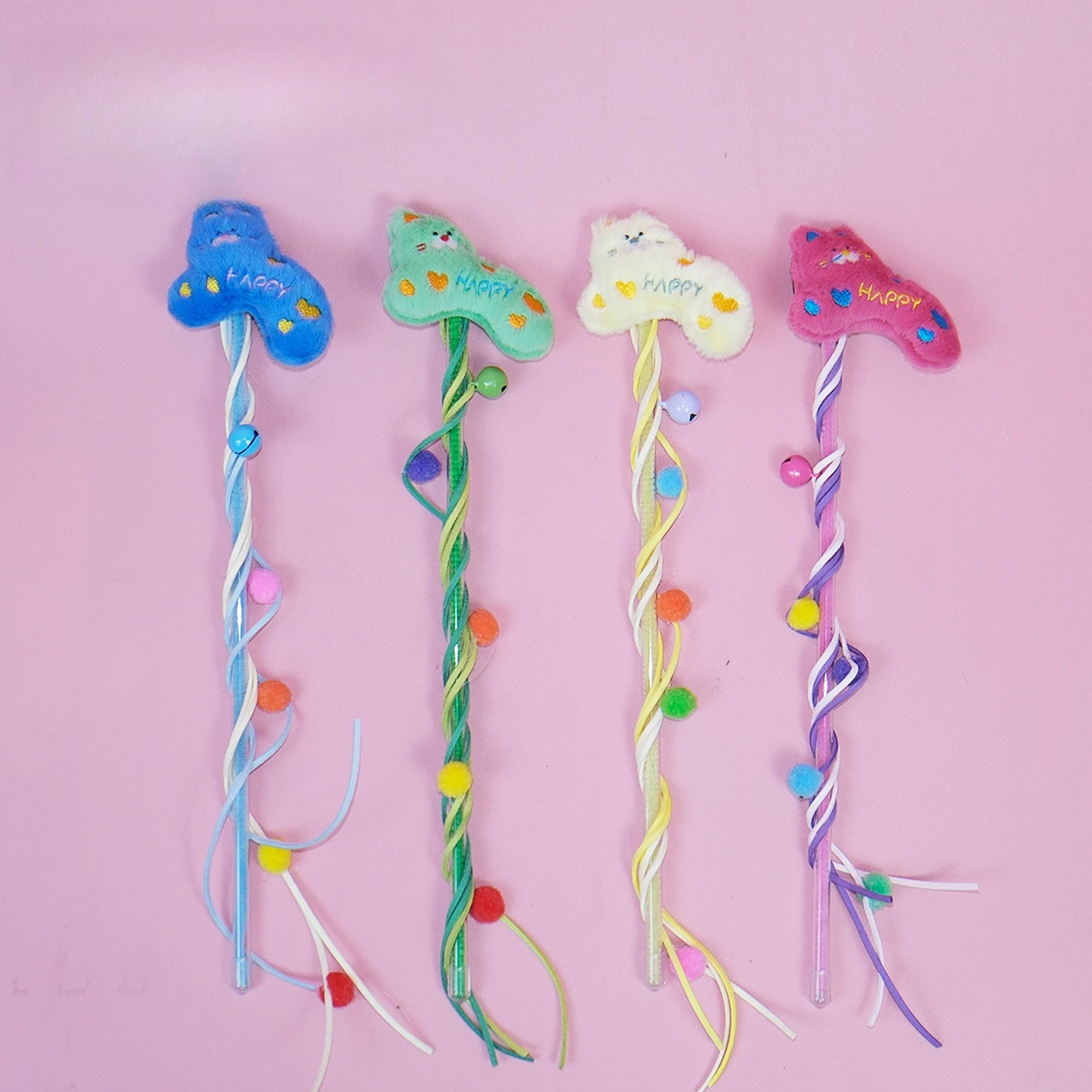 Juguetes para gatos y mascotas, palitos de burlas para gatos y gatitos coloridos, cuerdas de felpa, campanas relajantes autodentrantes, juguetes resistentes a mordeduras