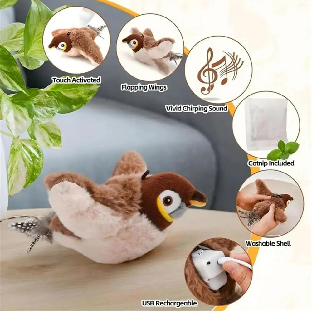 El juguete eléctrico interactivo para gatos con forma de pájaro está diseñado para mantener a su gato entretenido y activo a través del juego, satisfaciendo sus instintos naturales de caza.