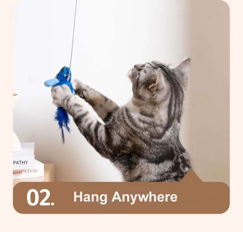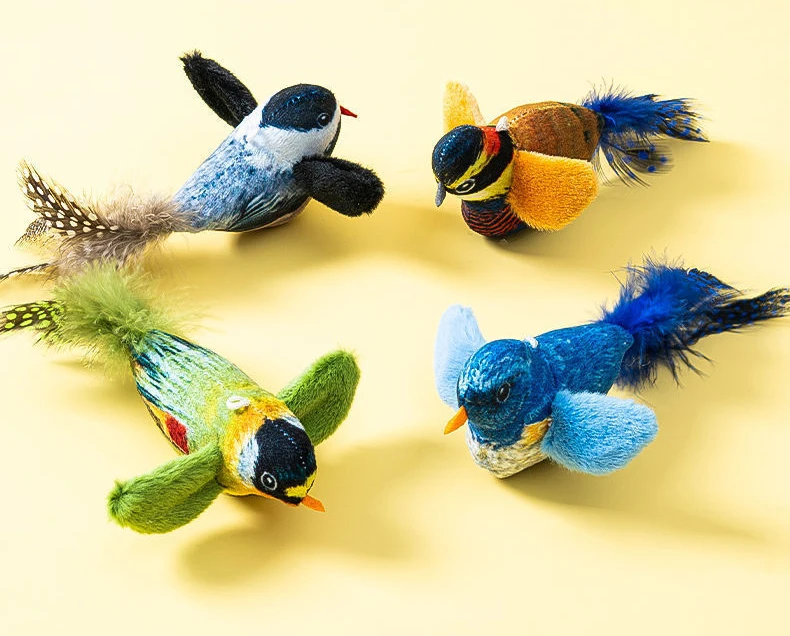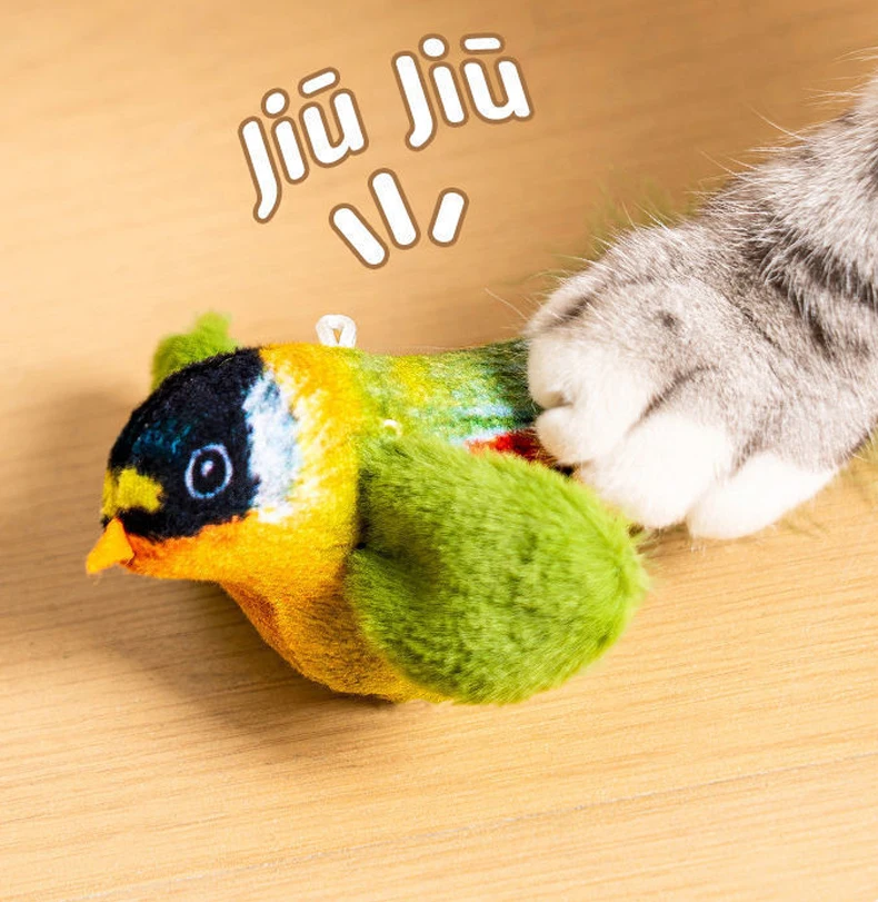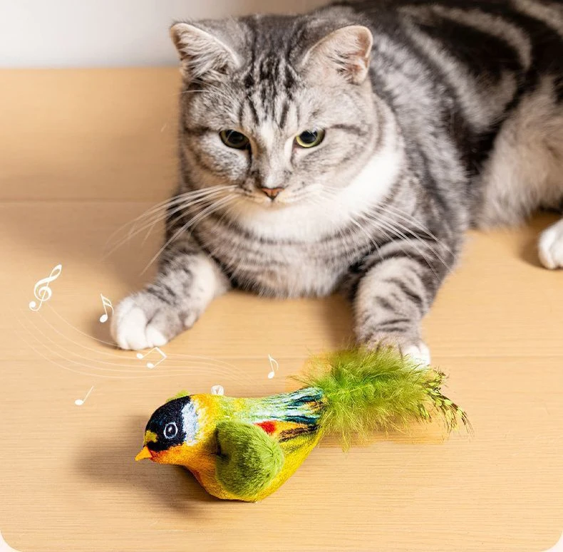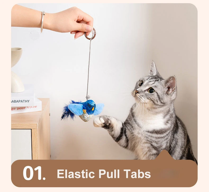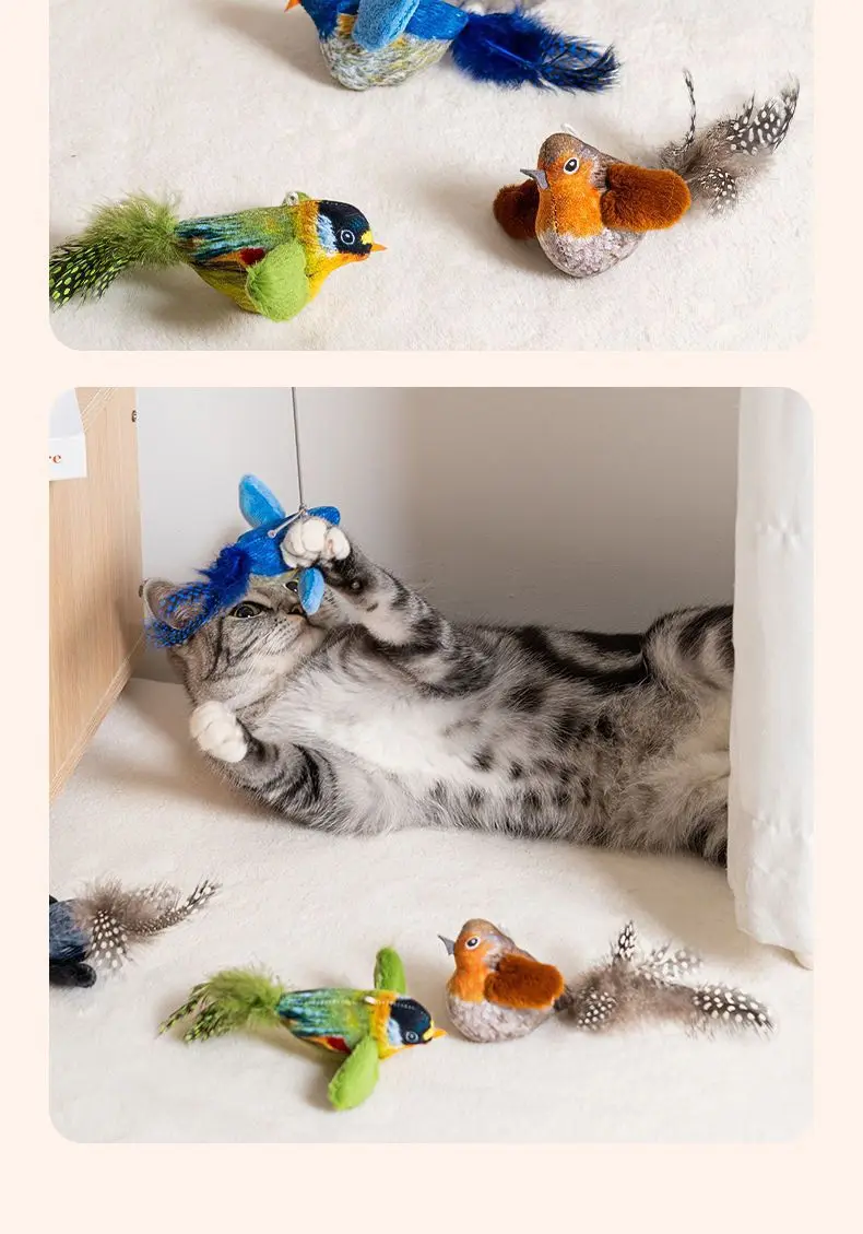 Juguetes para gatos de pájaro simulado, juguetes interactivos para pájaros voladores para gatos, pueden agregar hierba gatera, juguete de peluche activado por tacto, accesorios para perros