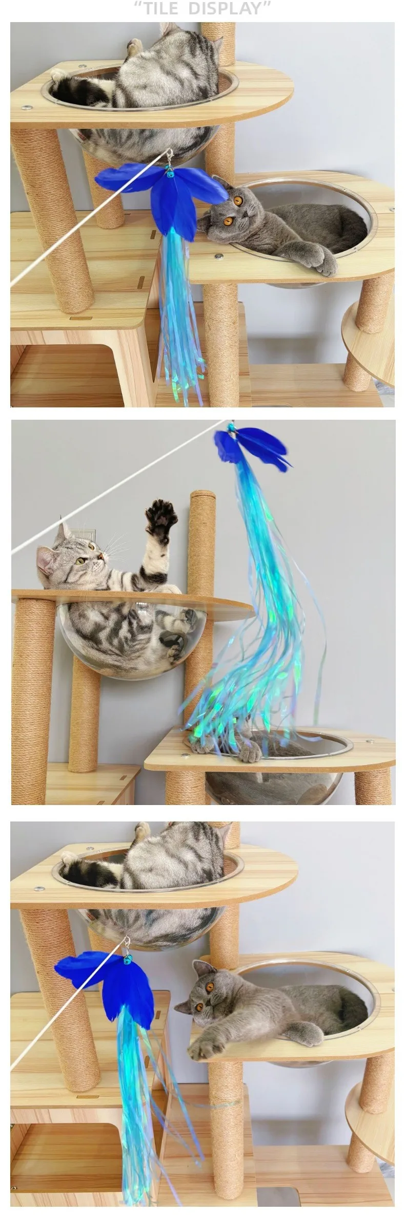 Juguetes para gatos, palo de plumas, juguetes interactivos para gatos, borla de lentejuelas extendidas, juguete para gatos, rompecabezas para gatitos con campana, mango largo, juguete para mascotas