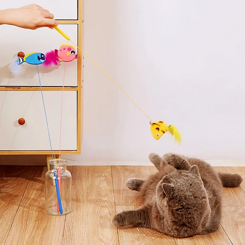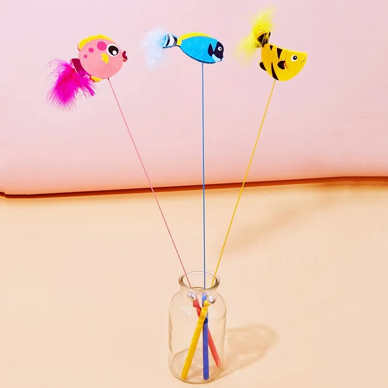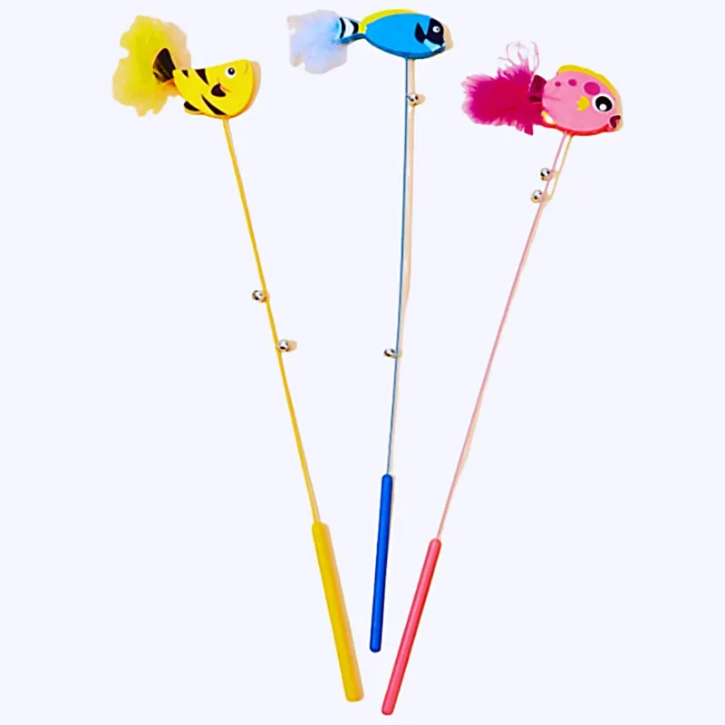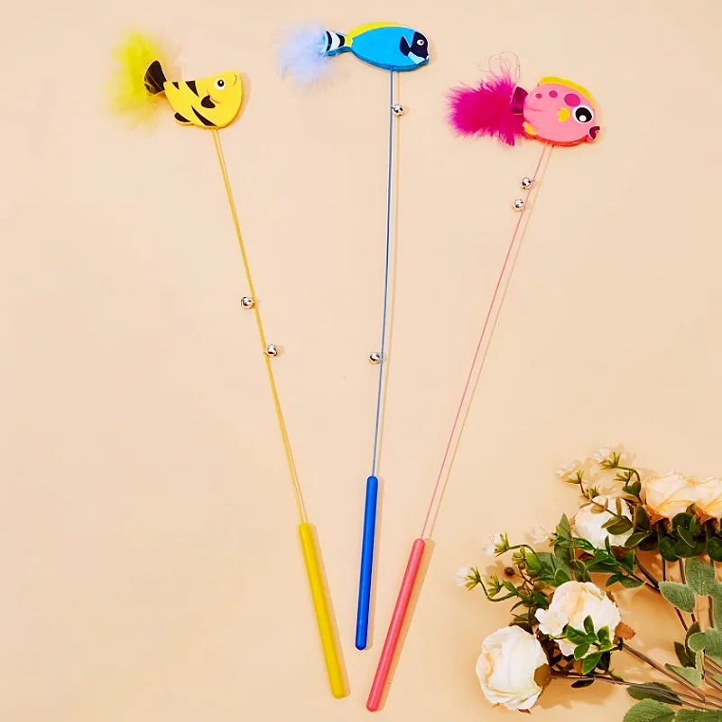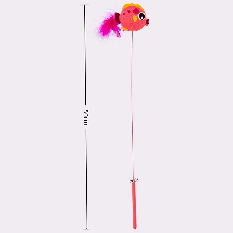 Juguetes para gatos, palo de rompecabezas de plumas para gatos, juguete interactivo para gatos con pez bonito con campana, rompecabezas de plumas con mango largo, juguete para gatos, productos para mascotas