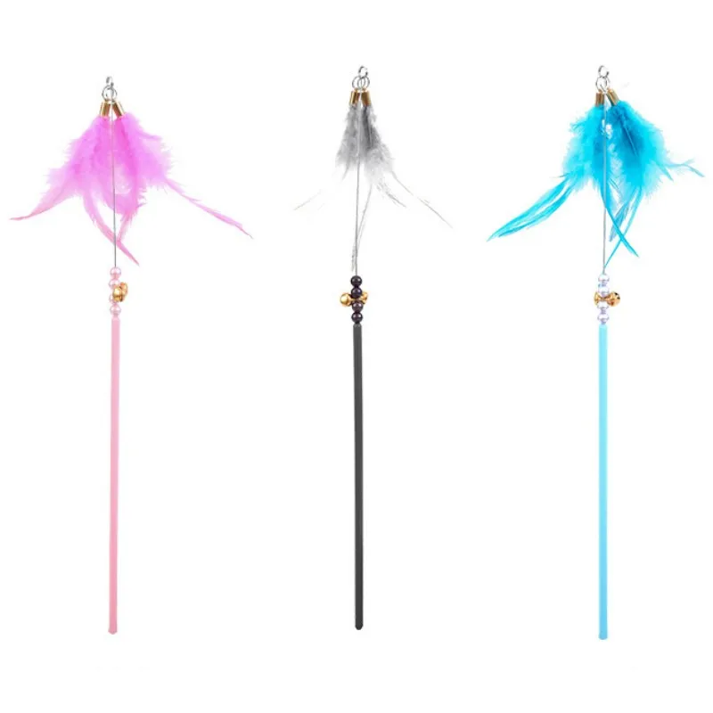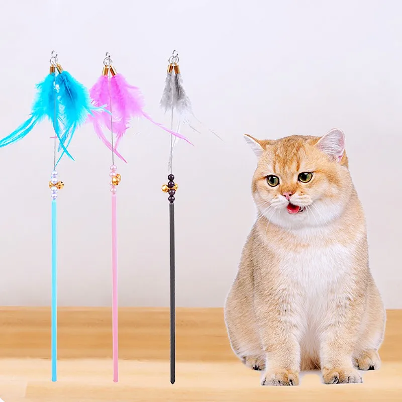 Juguetes para gatos, palo de Teaser para gatos con plumas, juguetes interactivos para gatos con mango largo, juguete de Teaser para gatos con campana, juguete de burlas de plumas, productos para mascotas