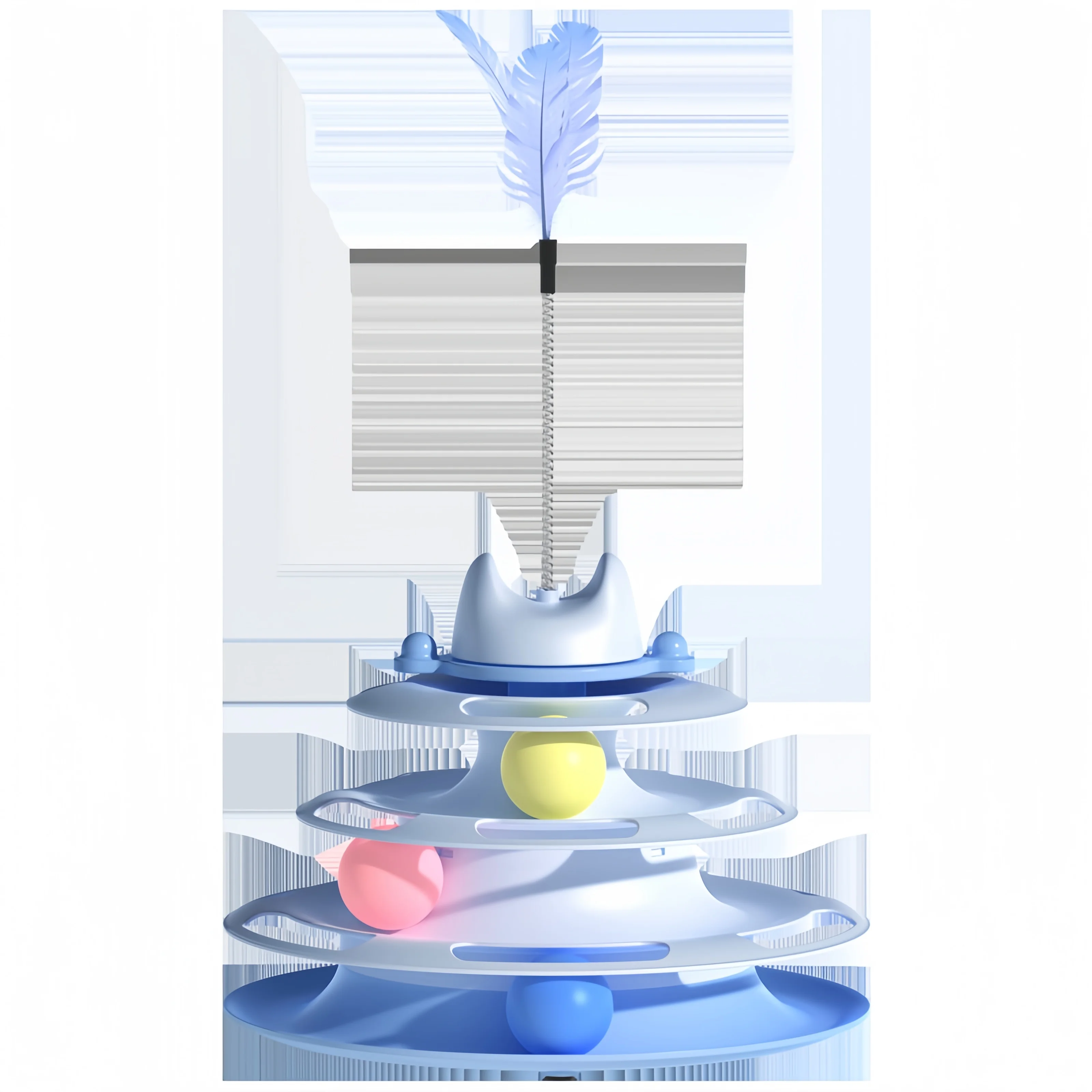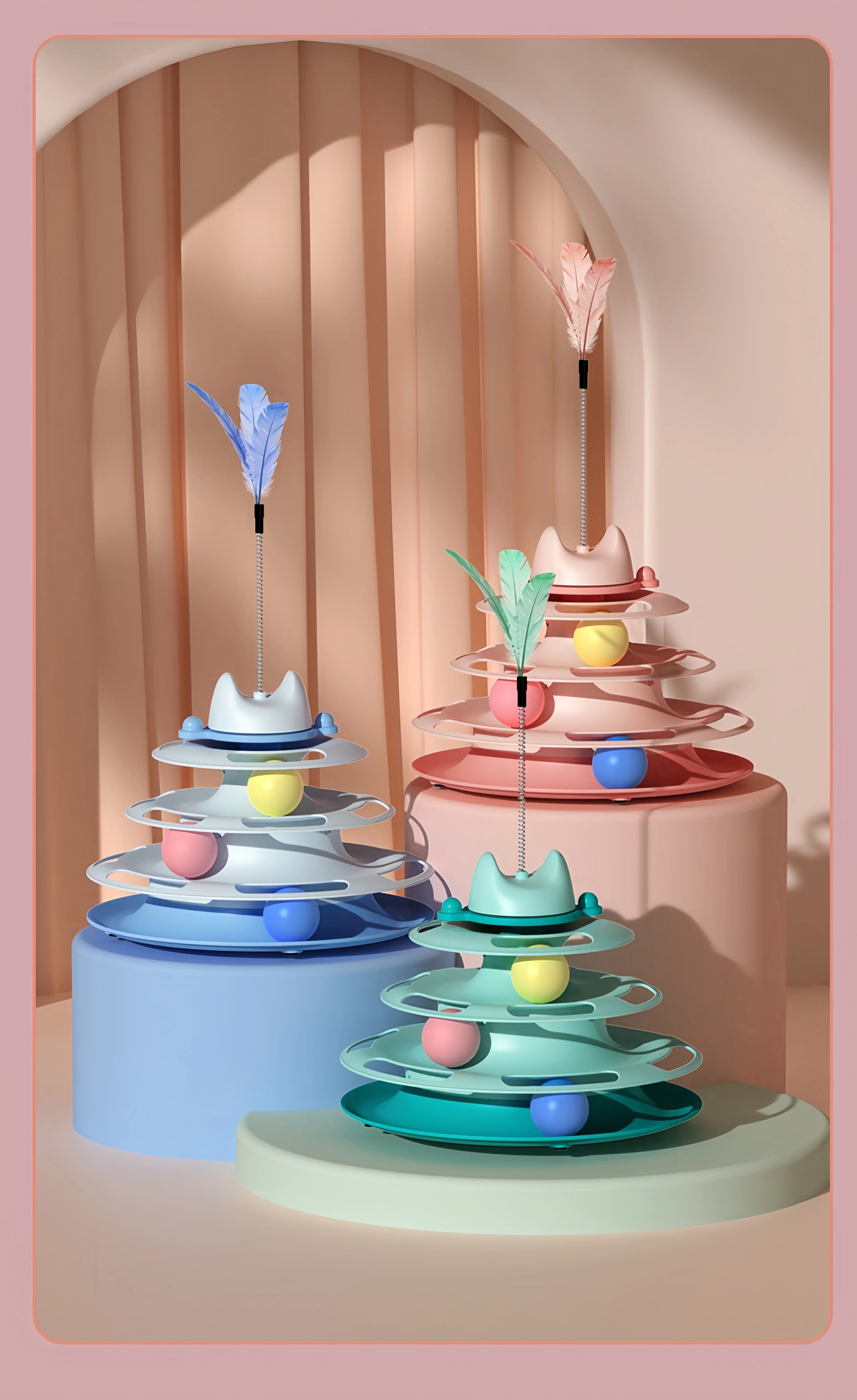 • Diseño de cuatro capas: el juguete presenta un diseño de tres capas que proporciona múltiples áreas de juego para aumentar el disfrute y la interactividad del gato.Es la combinación perfecta de entretenimiento y ejercicio para tu mascota.