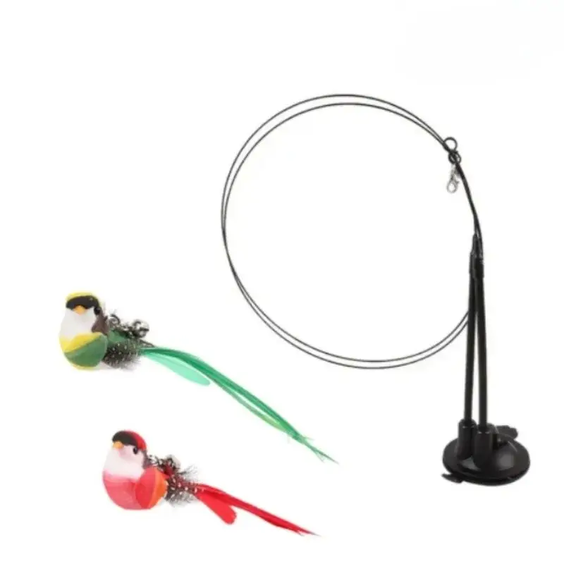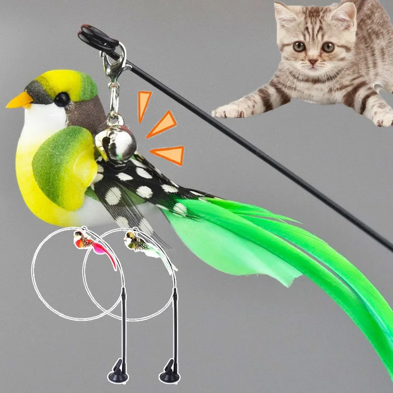Juguetes para gatos, pluma de pájaro simulada, palo de burla para gatos, ventosa, alambre de acero, varilla larga, hierba gatera de felpa, juguete para gatos