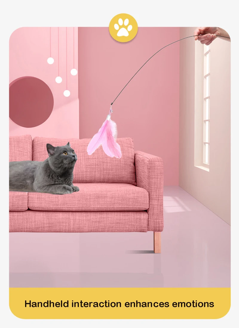 😸【2 modos interactivos】 Modos interactivos manuales y automáticos de juguetes de plumas para gatos.Al sostener la varita para gatos, puedes interactuar y jugar directamente con tus gatos.Pero si te sientes cansado o ocupado, puedes volver a insertar la varita en la ventosa y dejar que el gato disfrute de la entretenimiento personal.Los juguetes de plumas para gatos suaves y ligeros pueden excitar a los gatitos para hacer ejercicio y mantenerse saludables, aliviar su ansiedad y soledad, lo que también puede mejorar las relaciones con los gatitos.