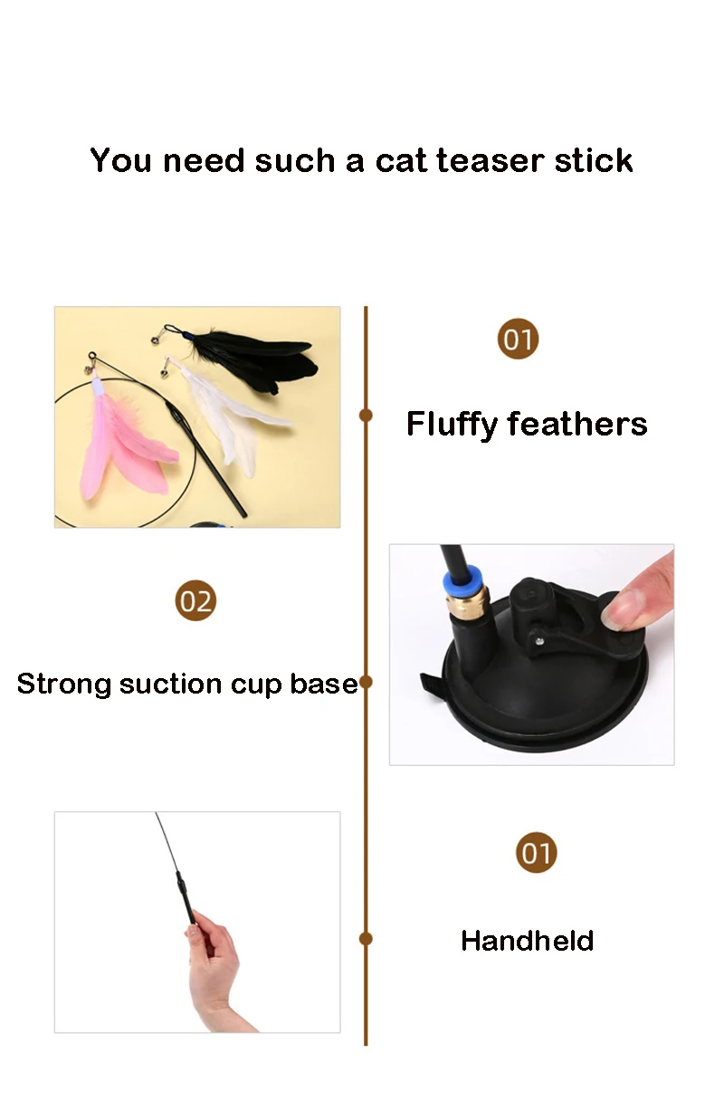 👍Materiales seguros y de alta calidad: los juguetes de plumas para gatos están hechos de tintes seguros y no tóxicos y material de plumas naturales.La varita para gatos está hecha de metal flexible y duradero.La ventosa está fabricada con materiales TPU (3 años de duración de uso).