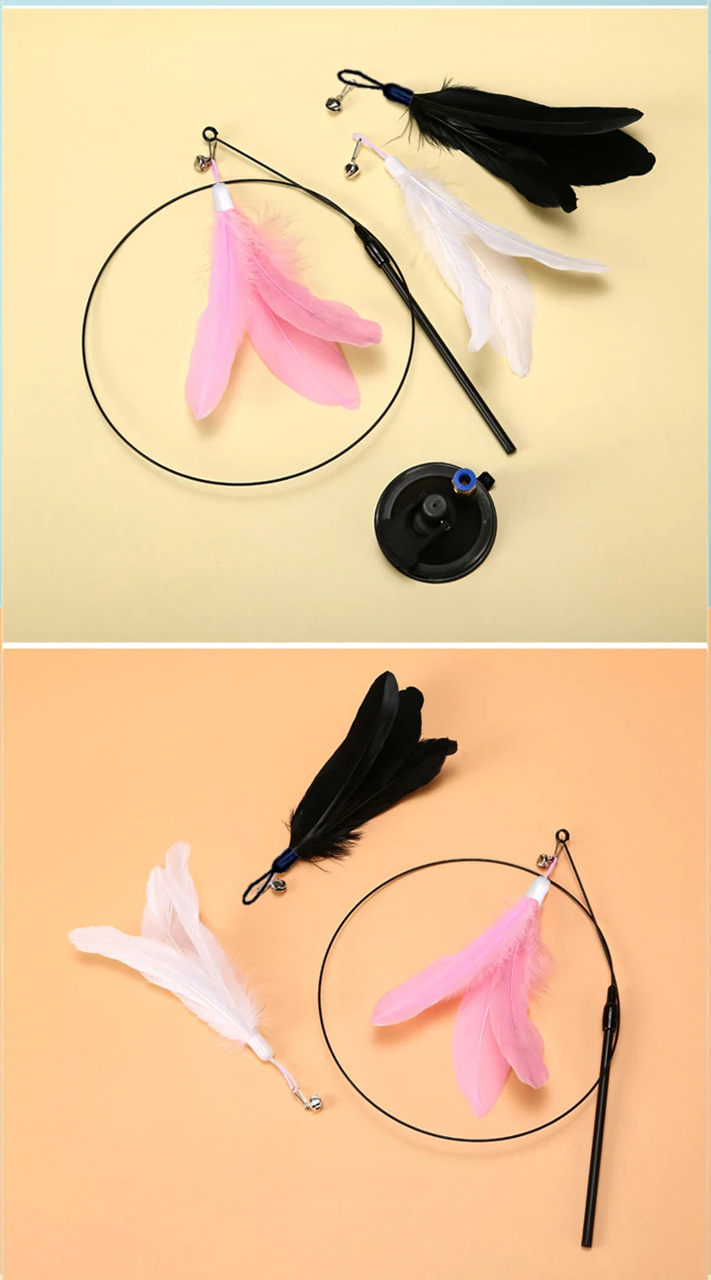 Juguetes para gatos, varita de plumas, juguete interactivo, juguetes para gatitos con súper ventosa, reemplazos de plumas desmontables
