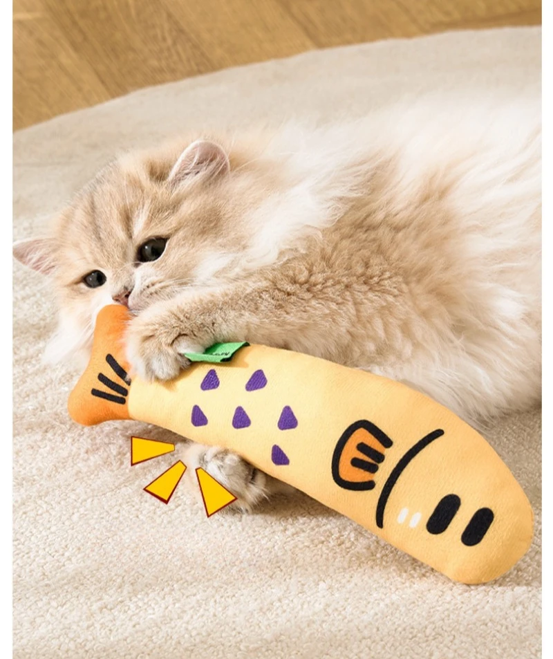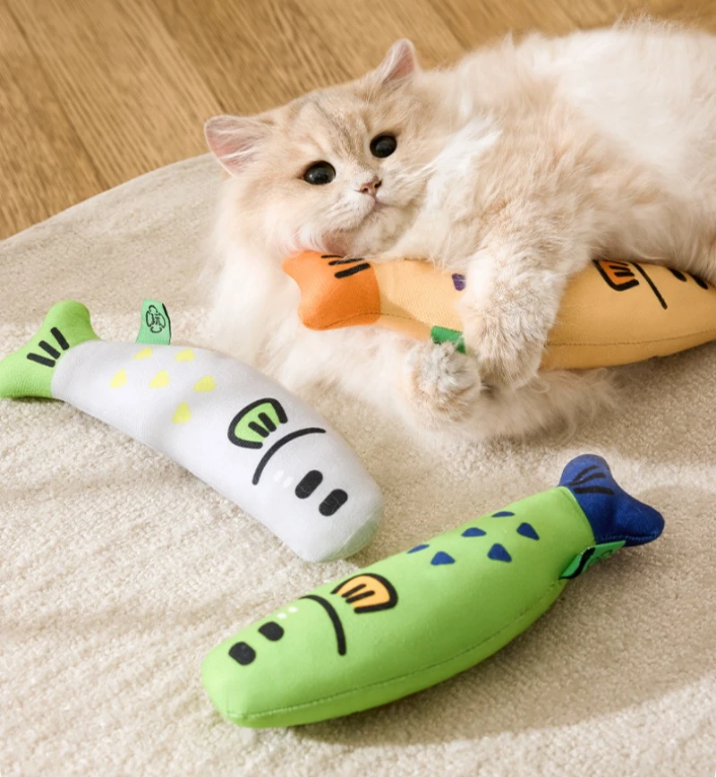 Juguetes de hierba gatera en forma de pez para gatos, productos de juego interactivos para interiores, suministros de molienda de dientes resistentes al masticable para mascotas, juguete para chirrido de gatito