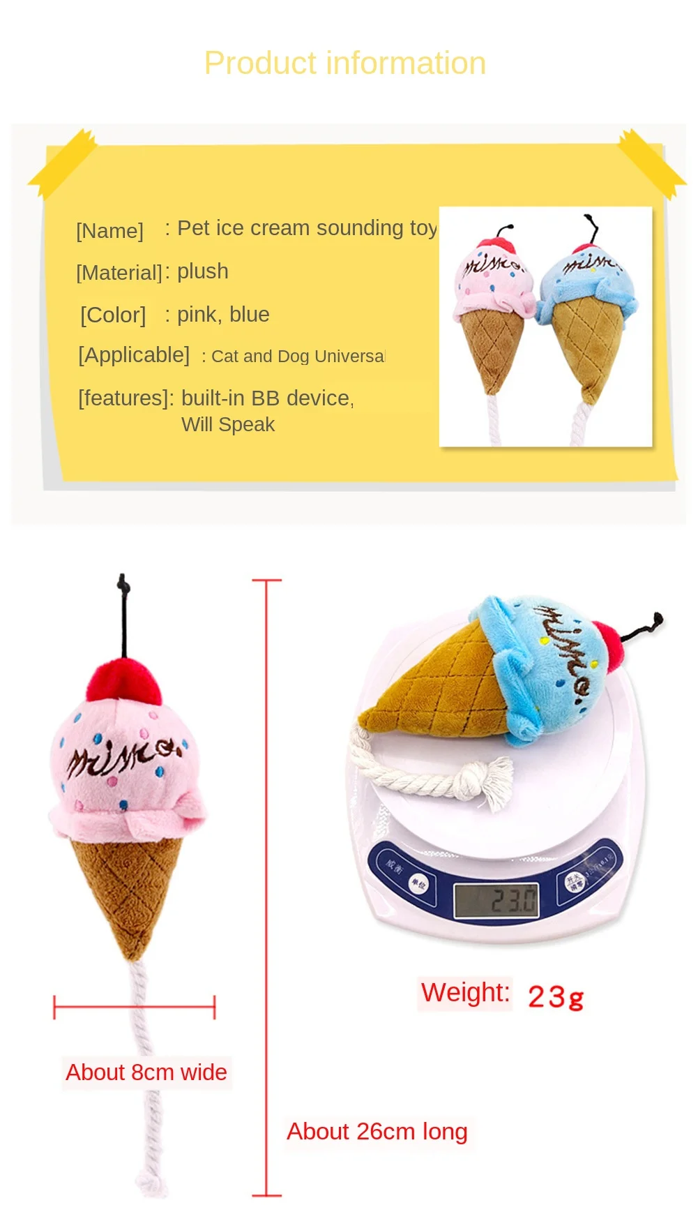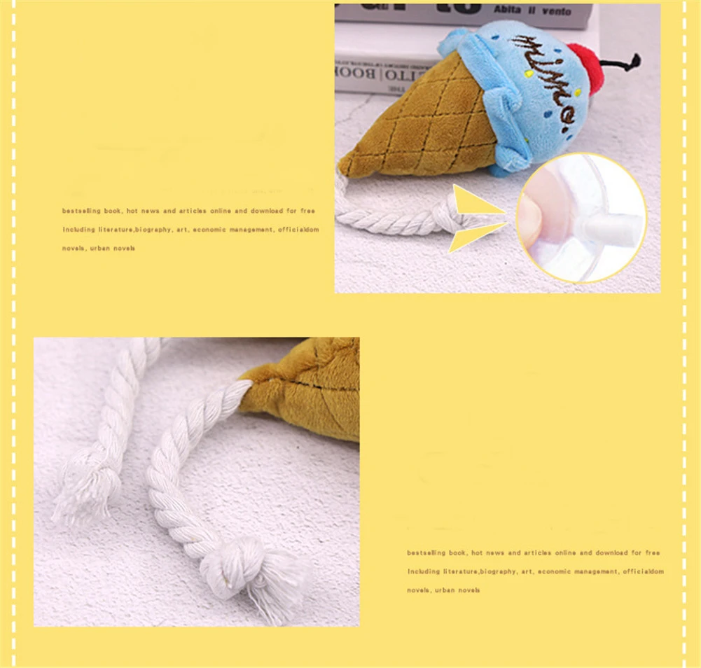 Juguetes de hueso chirriante de felpa para perros, resistentes a las mordeduras, juguete de entrenamiento para cachorros, helado suave, suministros para mascotas, 1 unidad