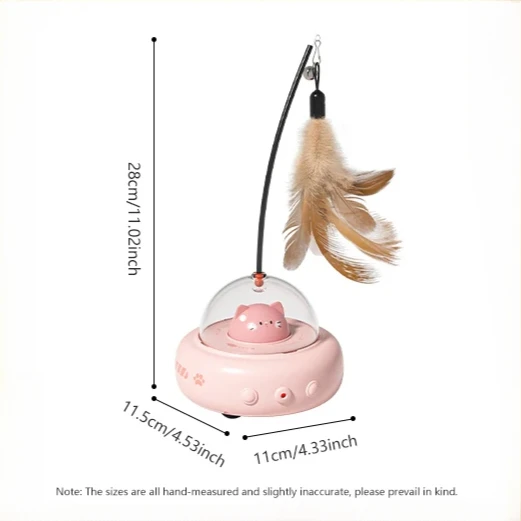 Mantenga a su gato entretenido durante horas con este Teaser Stick automático inteligente!Diseñado con sensores infrarrojos, luces LED de niebla de colores, y un 360° Omniwheel, este juguete imita movimientos parecidos a una presa para despertar el instinto de caza de tu gato.Cargue una vez por 2 horas de juego– ¡perfecto para padres de mascotas ocupados!