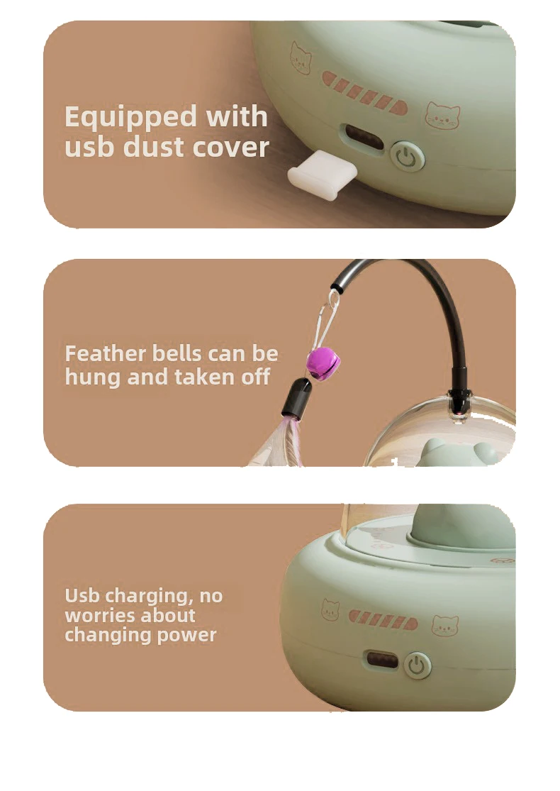 Modo automático: El sensor de infrarrojos detecta el movimiento de su gato, provocando bailes de plumas impredecibles.