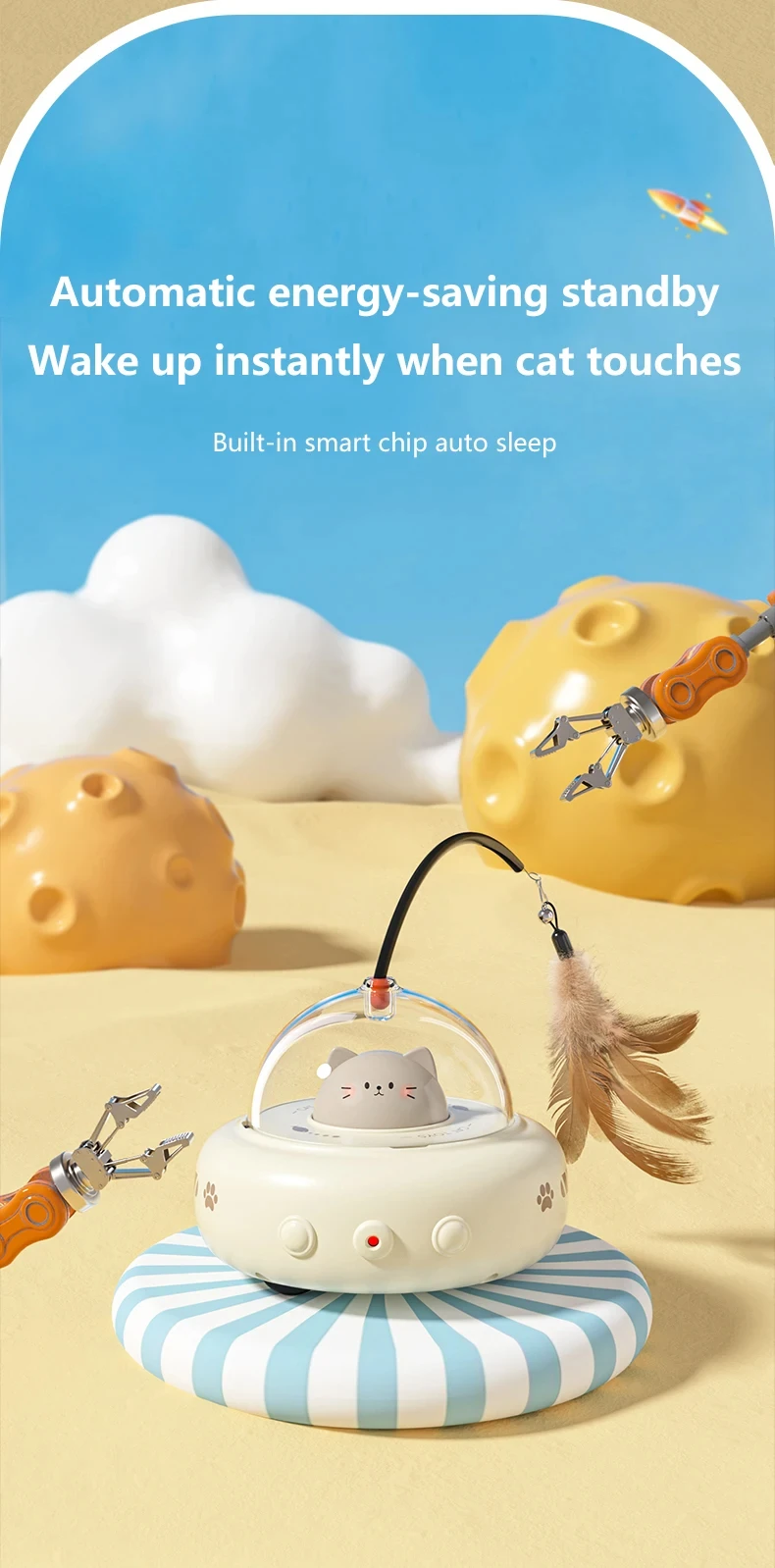 Juguete automático inteligente para gatos: palo teaser eléctrico interactivo con pluma reemplazable, luces LED y 360° Movimiento