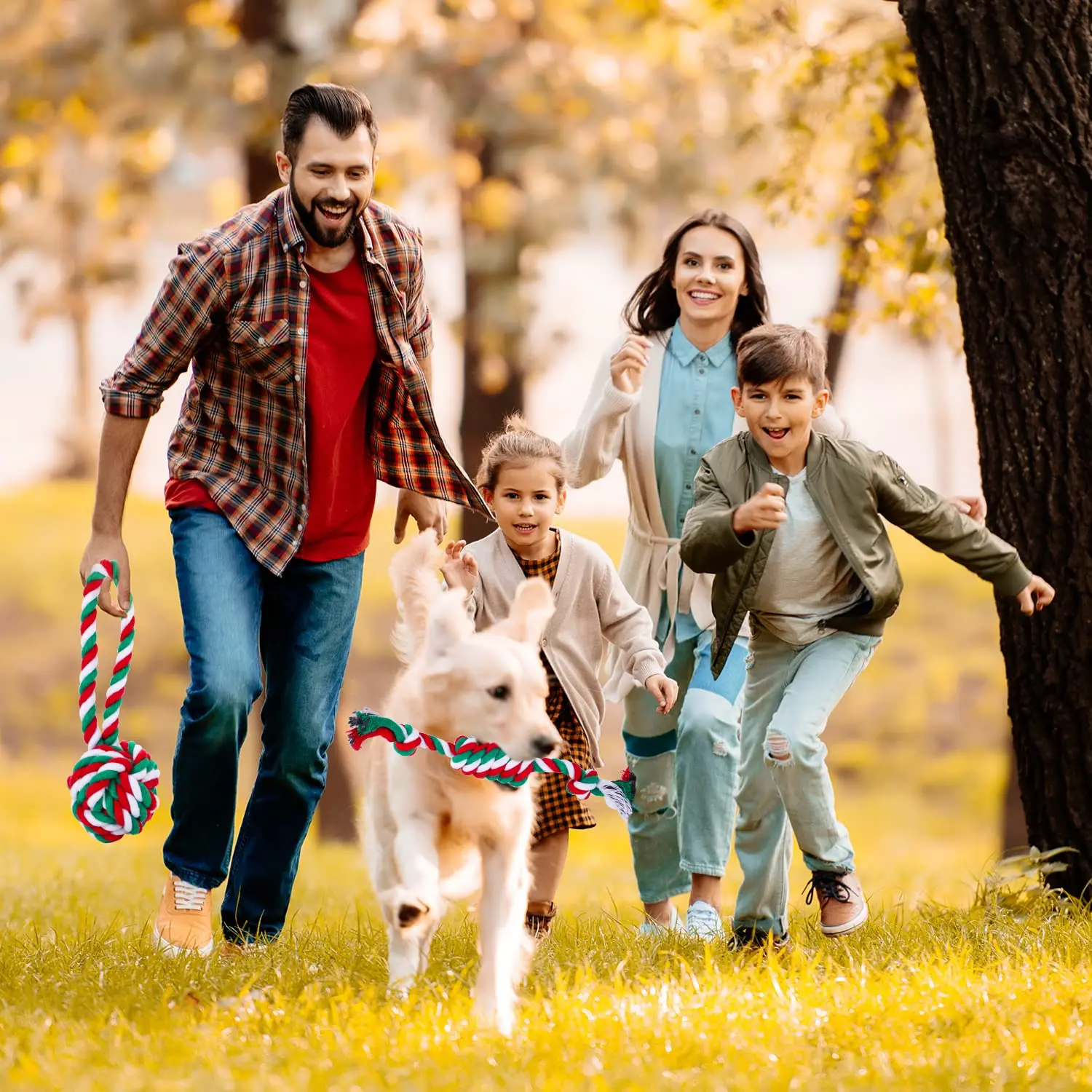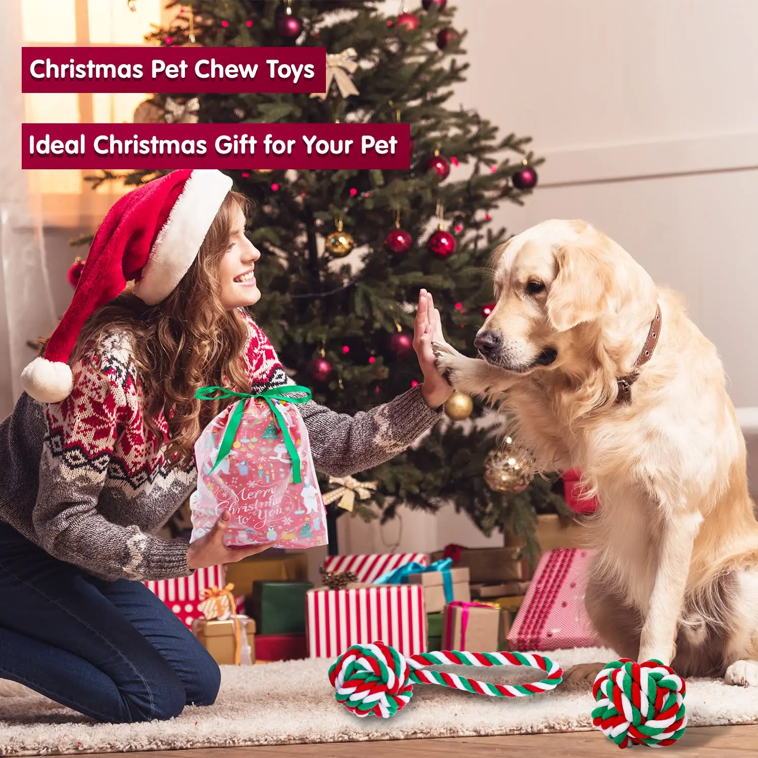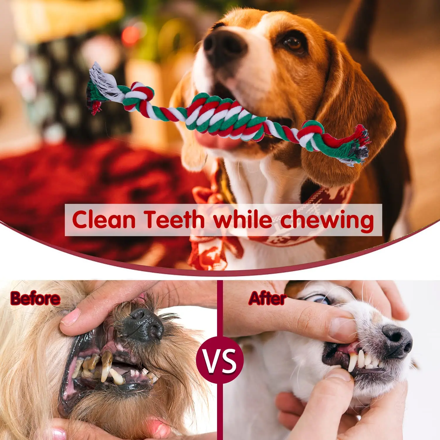 Juguetes interactivos de cuerda de algodón para perros pequeños y grandes, juguete de mordida duradero para mascotas, Pug, Chihuahua, Bichon, regalo de Navidad
