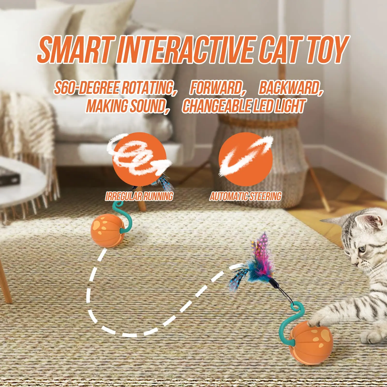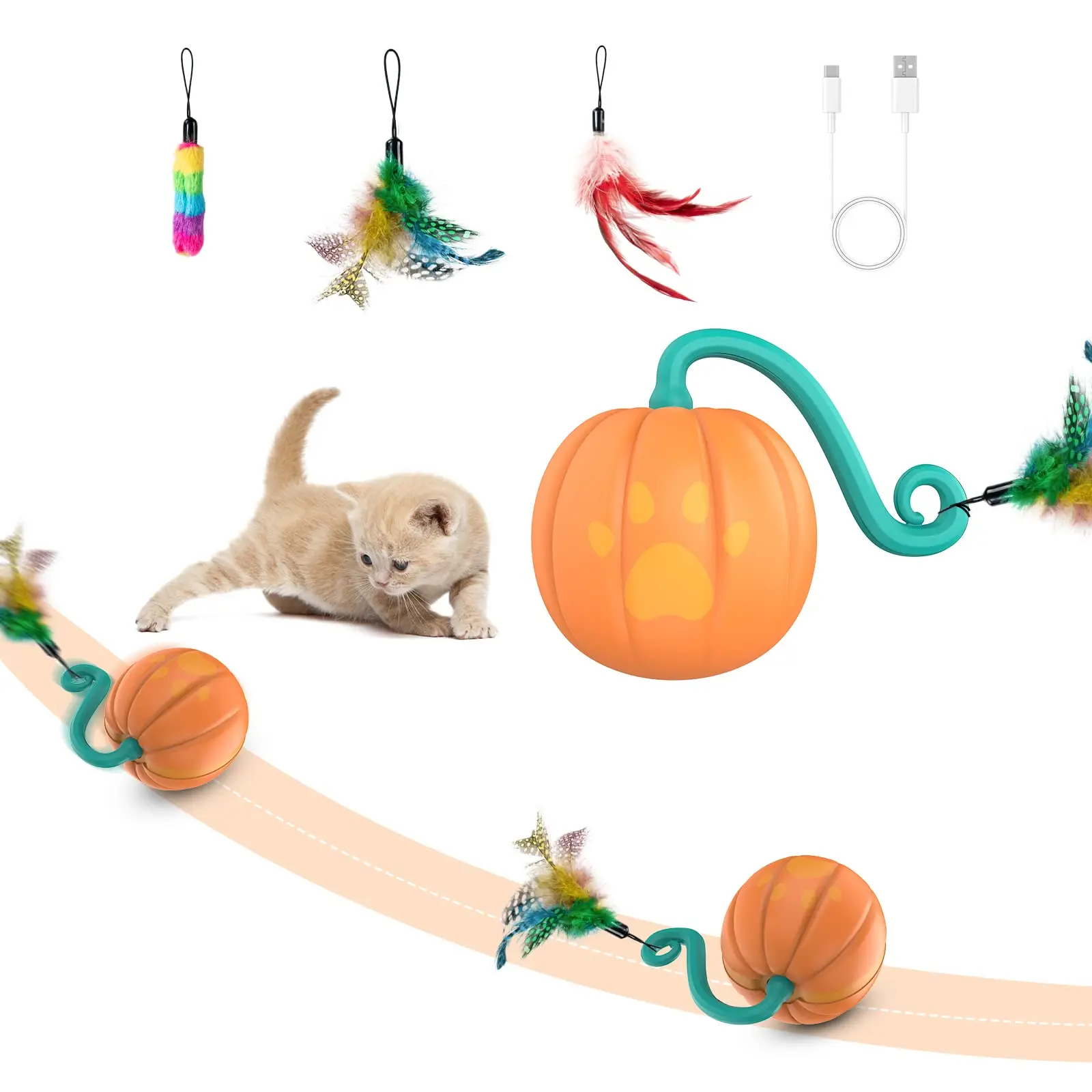 Juguetes interactivos para gatos de interior DIY 5 en 1 juguetes de pelota para gatos de movimiento automático/juguetes para cachorros sonidos inteligentes y juguetes para gatos con Control táctil
