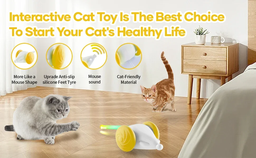 Juguetes interactivos para gatos de interior, juguete automático para gatos, luces LED, juguetes para gatos y ratones, juguetes para gatos móviles con detección inteligente, recargable por USB