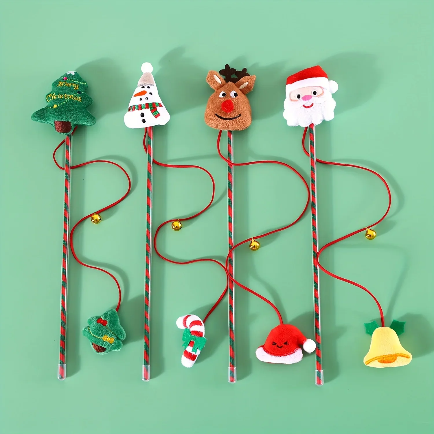 El paquete incluye: Este Paquete de juguete de regalo de Navidad para gatos incluye 4 juguetes de palo de gato, tamaño: 30X40CM/12x15,75 pulgadas, puede agitar el palo de gato para ayudar a su gato de interior a voltear, saltar, asalto, persecución