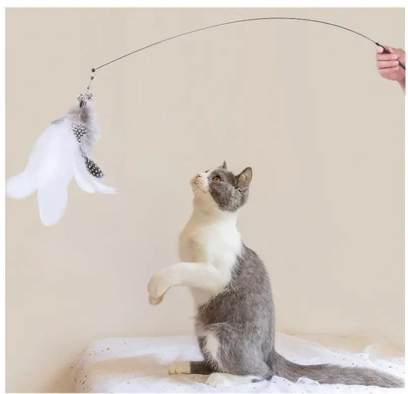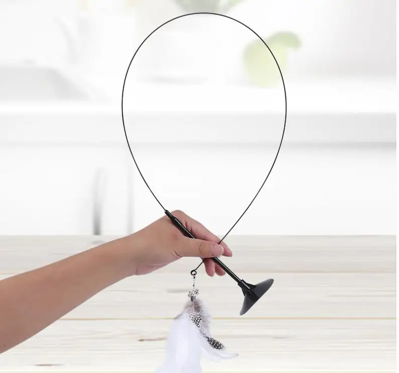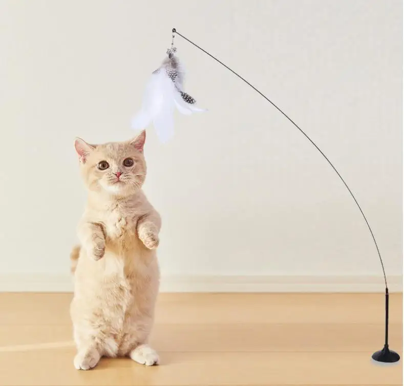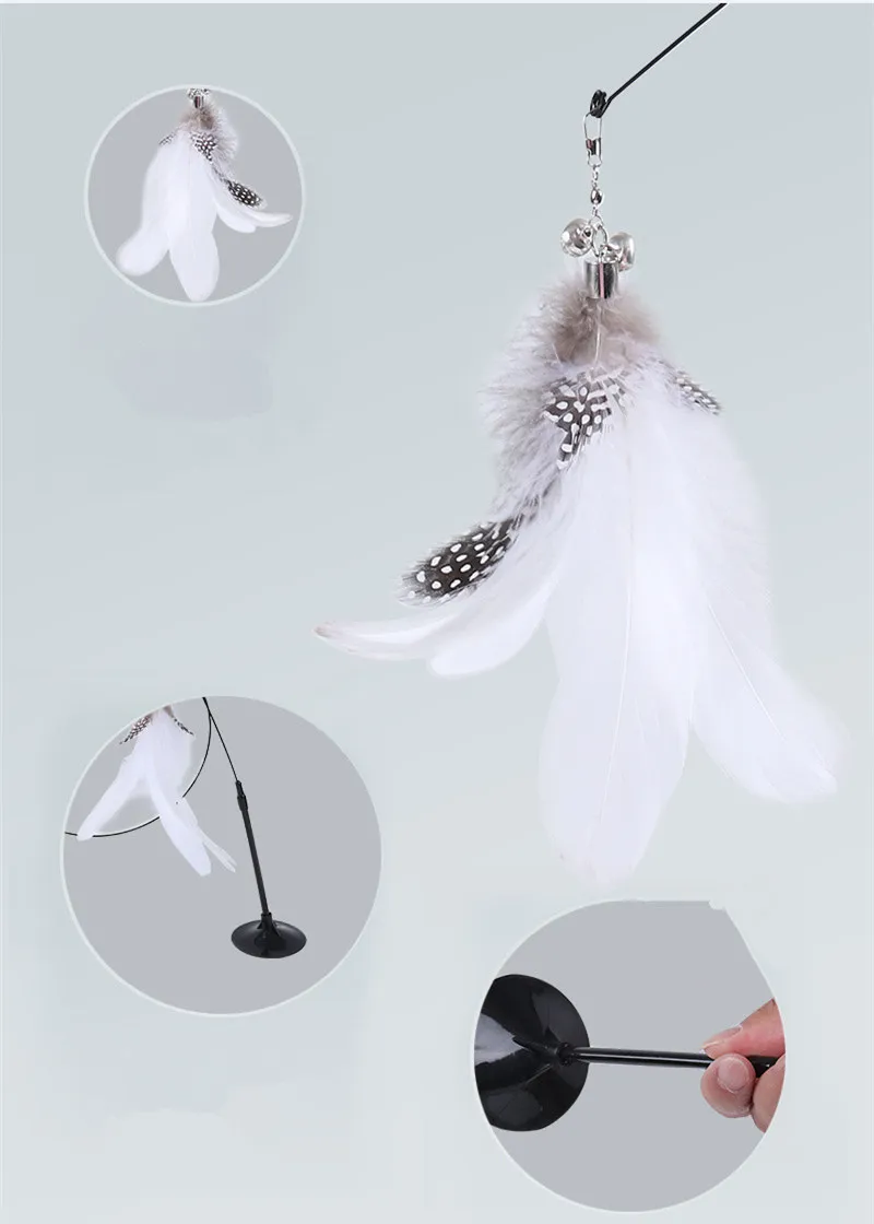Juguetes interactivos para gatos, juguetes de plumas de alambre de acero para gatos, palo con ventosa, juguete para gatos con campana, productos para mascotas