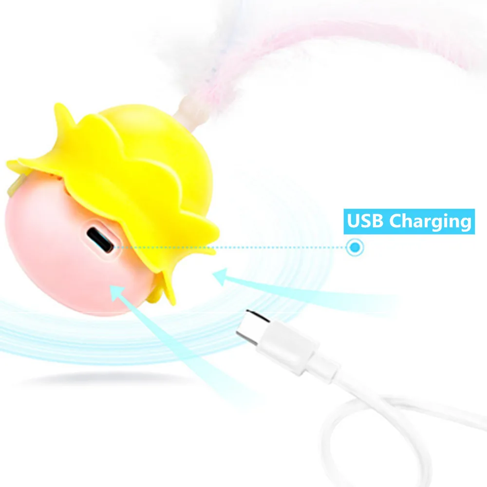 Juguetes interactivos para gatos con LED, bola giratoria automática inteligente, palo Teaser para gatitos, pluma, juguete chirriante para gatos
