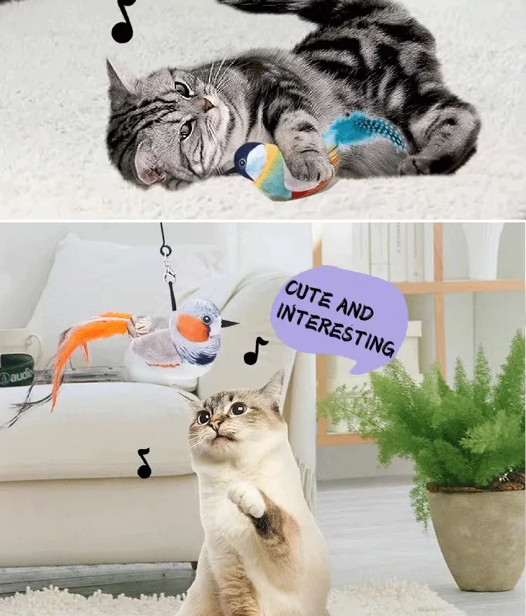 Juguetes interactivos para gatos, pájaro volador, juguete para gatos, alas batientes, hierba gatera, juguete para gatos, juguetes para gatitos activados por tacto con pluma