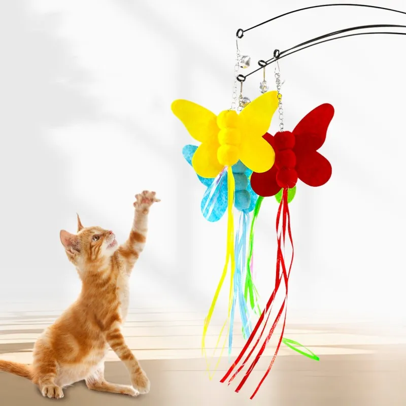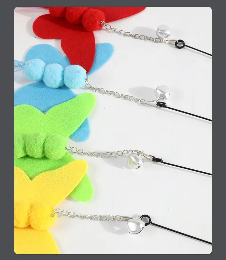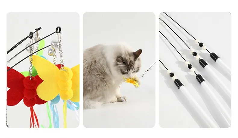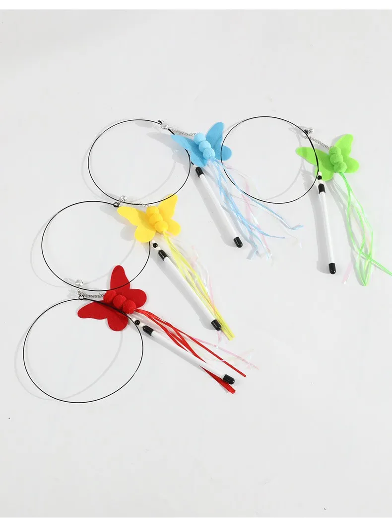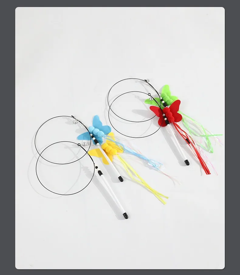 Juguetes interactivos para gatos, palos de mariposa, borla, alambre de acero, campana, suministros para mascotas