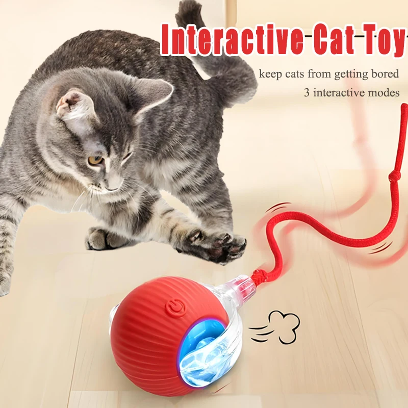 Pelota de juguete para gatos con ruedas automáticas, juguetes interactivos activados por movimiento para gatos, pelota de juguete recargable por USB con cola larga, juguetes de juego para perros para gatos
