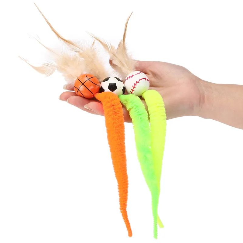 Juguetes interactivos para gatos, pelota que rebota de plumas coloridas, suministros para mascotas, rompecabezas para gatitos, juguete de pelota para gatos de interior