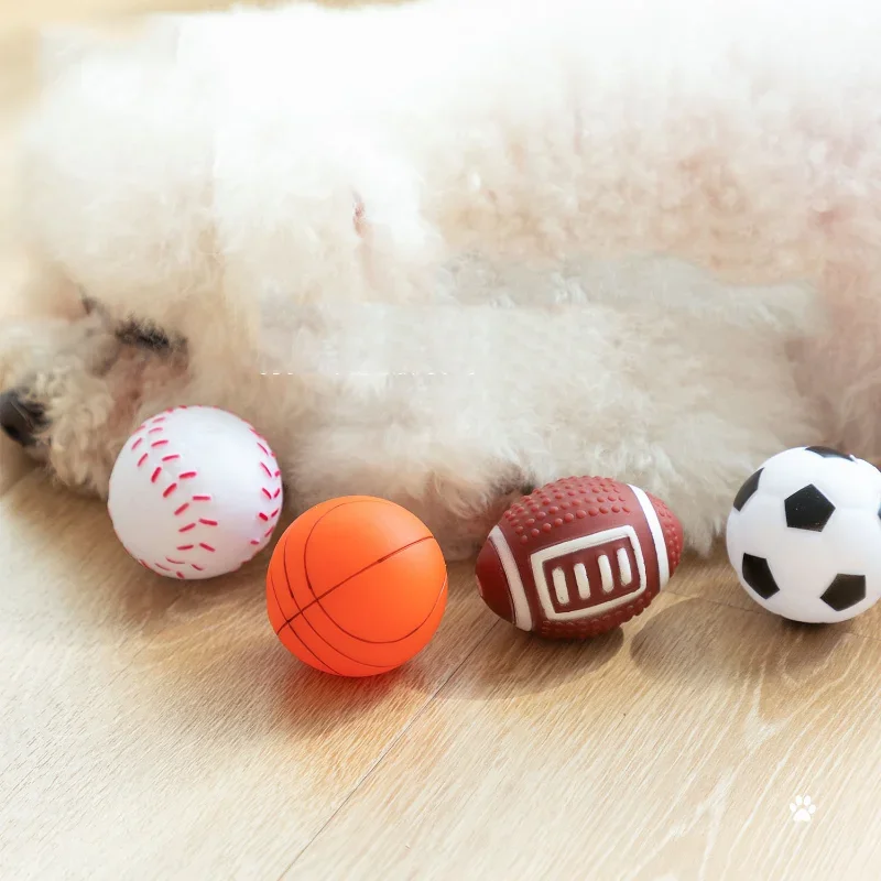 Juguetes interactivos para mascotas, baloncesto, Rugby, tenis, látex, resistentes a las mordeduras, alivio del sonido, accesorios para perros, venta al por mayor