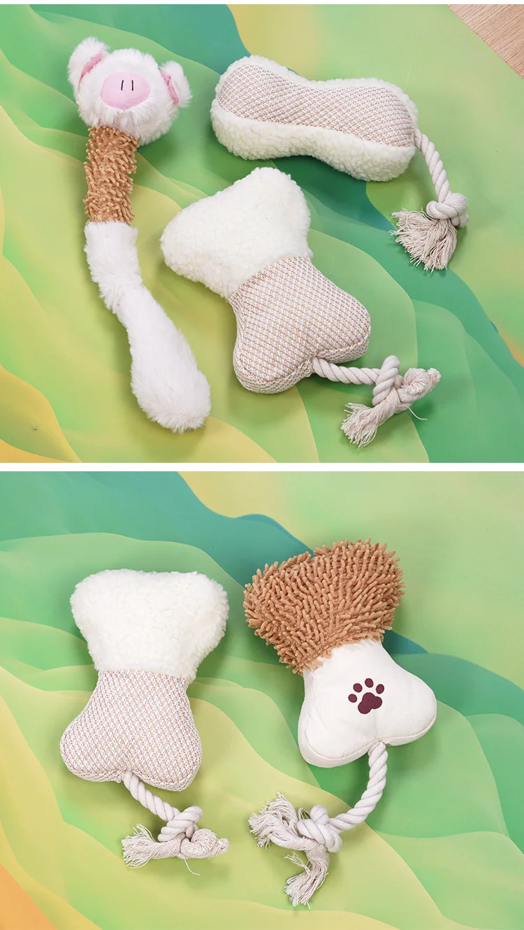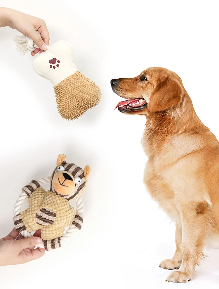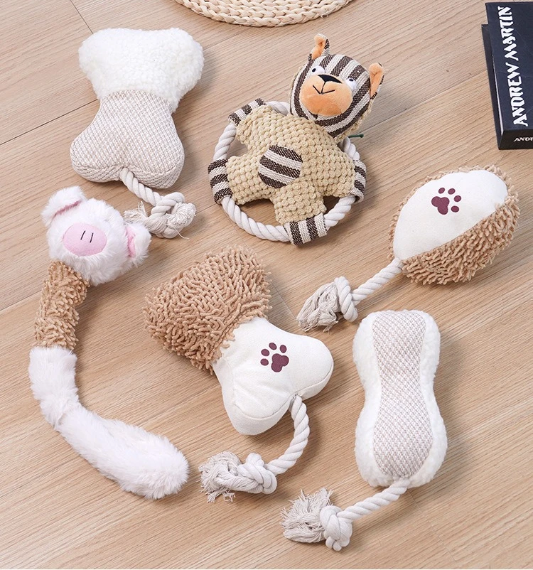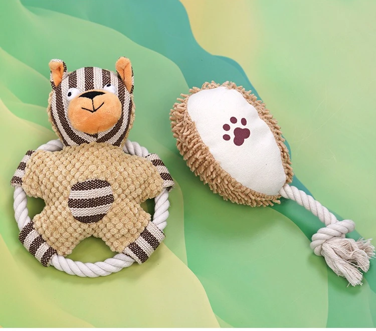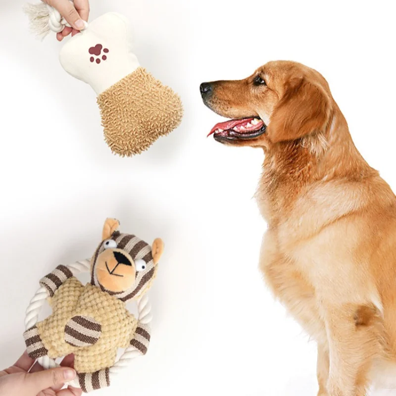 Juguetes interactivos para mascotas para perros, productos de juego con nudo de cuerda de algodón, suministros de molienda de dientes resistentes al masticable para cachorros, juguete para chirrido en interiores