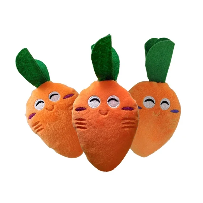 Juguetes interactivos para perros pequeños a medianos, juguete de peluche chirriante, duradero, relleno, masticable, forma de zanahoria de dibujos animados
