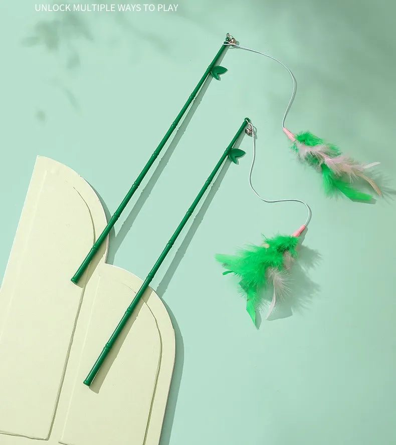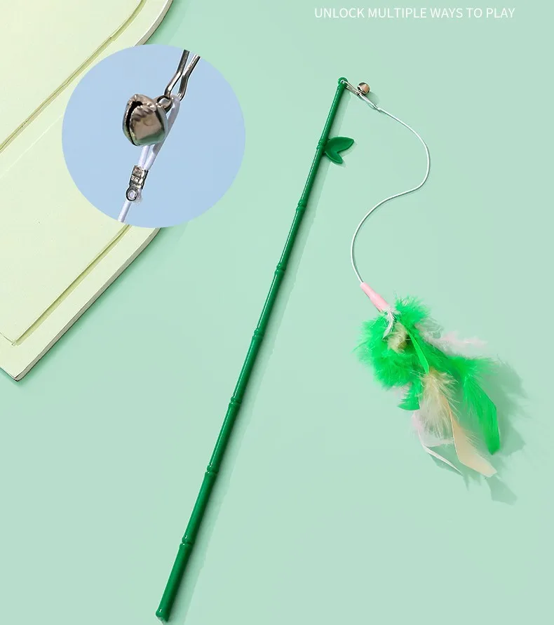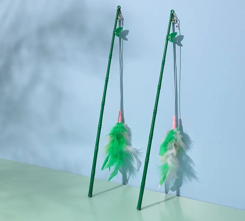 Juguetes interactivos de plumas con mango de bambú para gatos, palos desmontables con campana, juguetes de plumas para gatos, burlas para gatitos