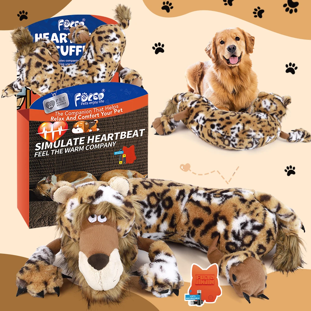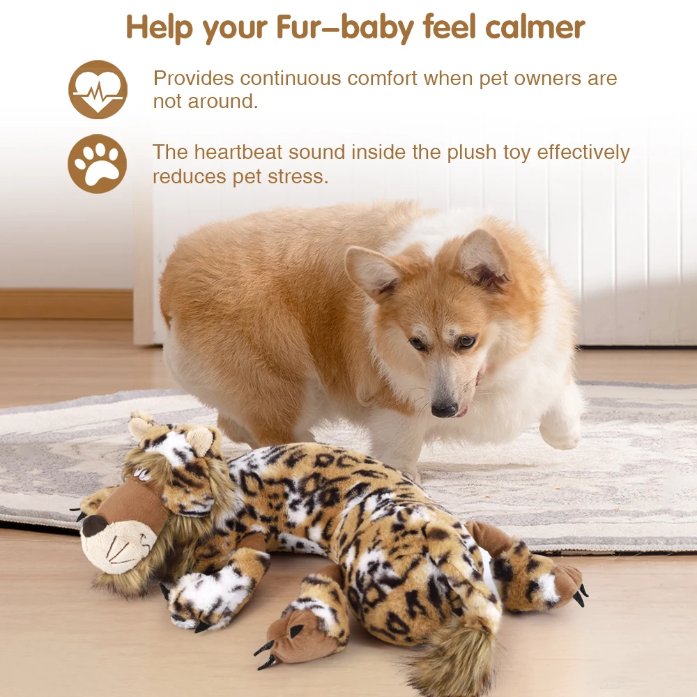 Juguetes de latido del corazón para cachorros, almohada cómoda para abrazar, juguetes grandes de latido del corazón de leopardo para aliviar el estrés y ayuda calmante