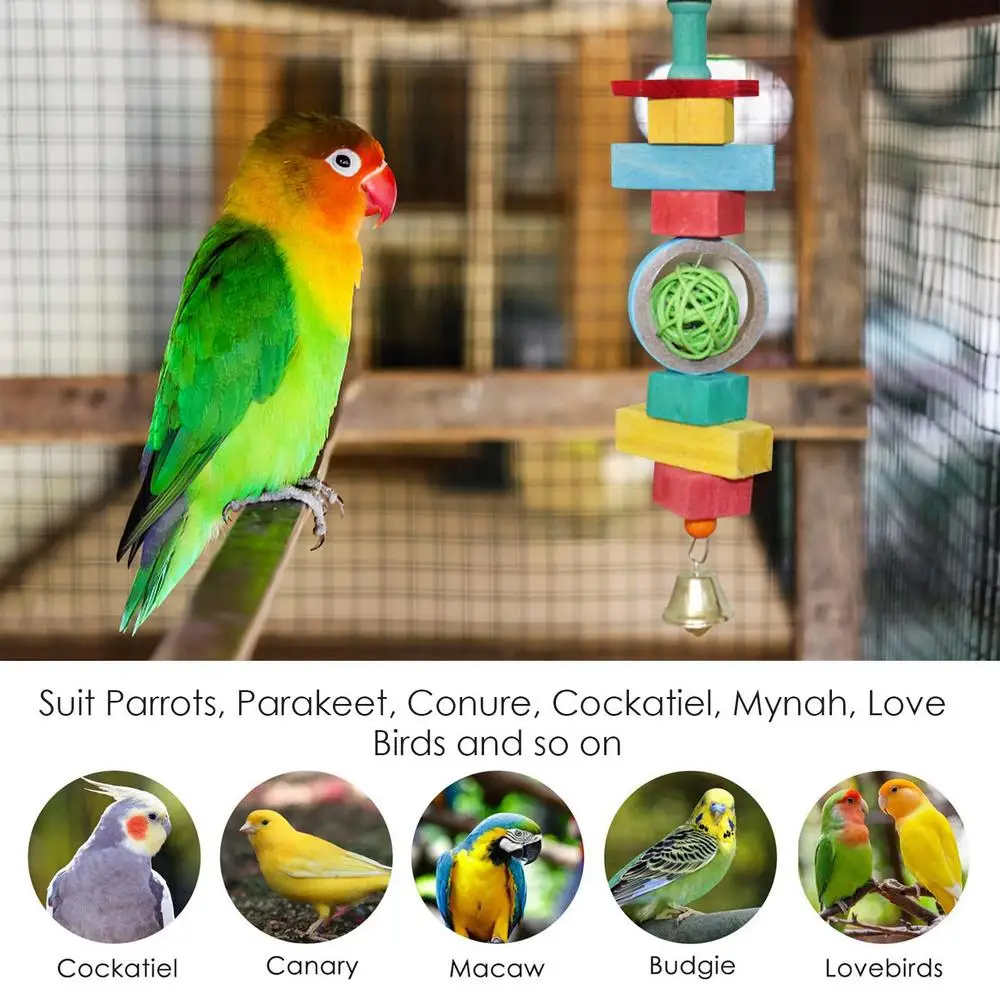 3. Material saludable e inofensivo: nuestros Juguetes Para loros cuentan con un diseño de disposición multicapa elaborado con material de madera seguro y saludable, adecuado para promover la salud física y mental de sus aves de compañía mientras trepan y exploran.