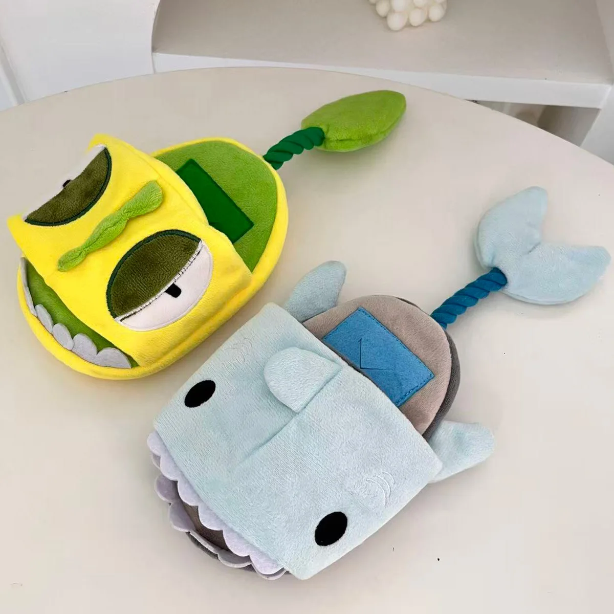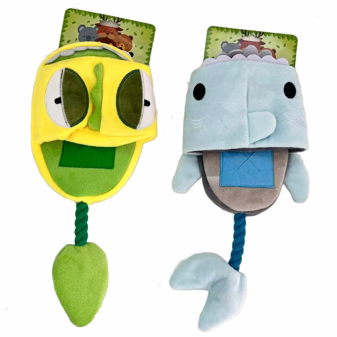 Juguetes para mascotas de peluche de tiburón y cocodrilo, zapatilla Snuffle con cuerda de algodón, juguete para masticar de desgarrar, perro gato interactivo de papel arrugado