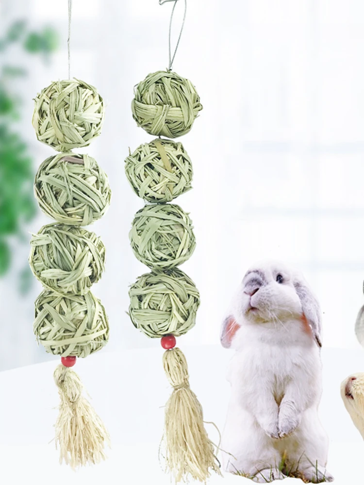 Bola de paja Natural, cuerda colgante, molares de conejo para mascotas, juguetes para aliviar el aburrimiento, accesorios para hámster, productos para mascotas