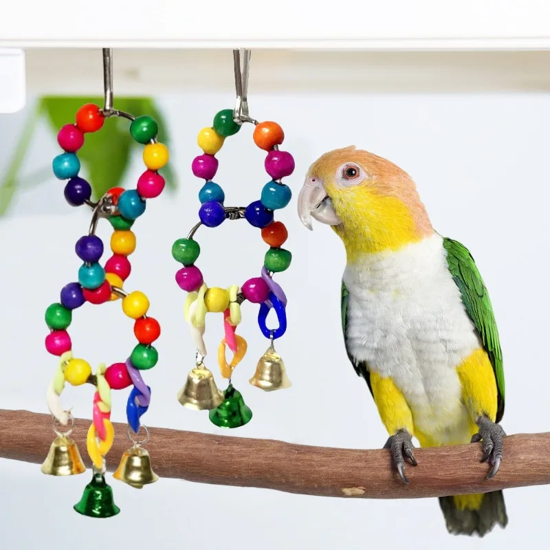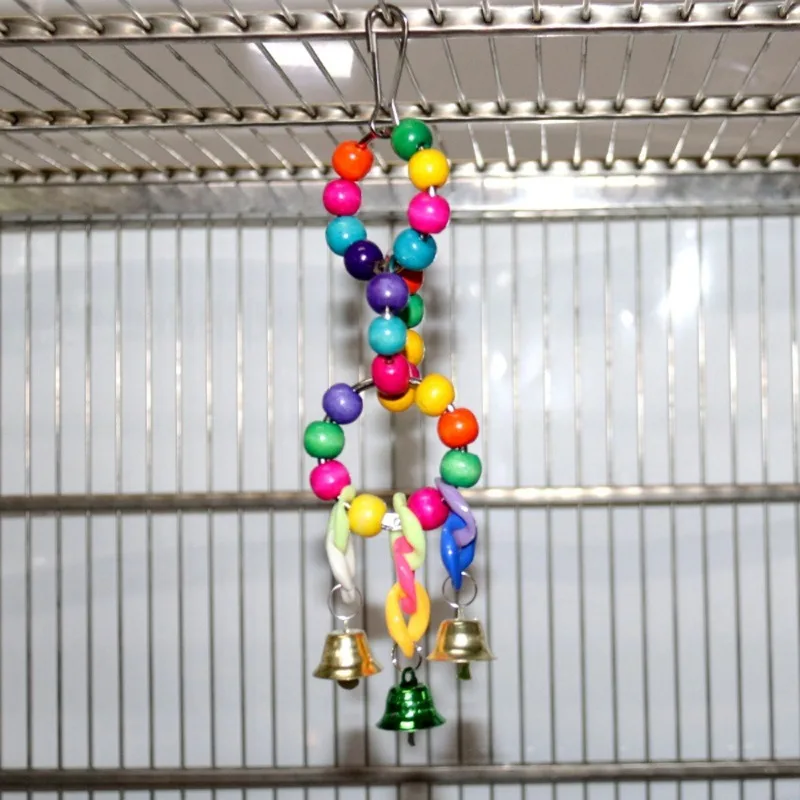 Juguetes para masticar loros de colores aleatorios, diseño de flores y campanas, cuerda colgante para morder, juguetes para mascotas, jaula para loros, accesorio de adorno, 1 ud.