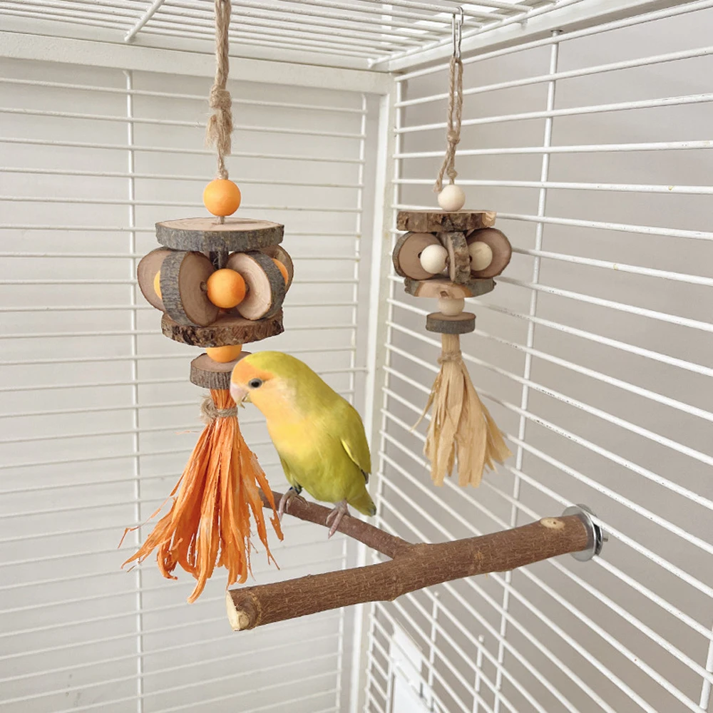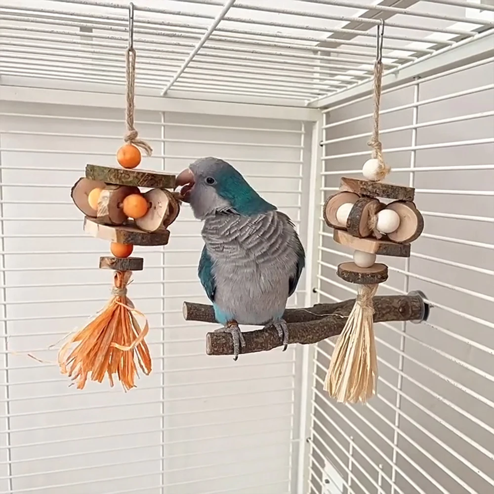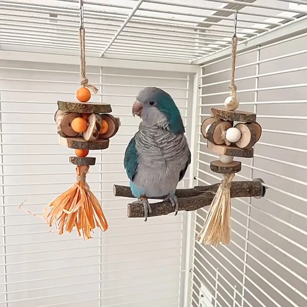 Juguetes para masticar pájaros de madera, trituradora de loros, juguete colgante para morder, columpio, juguetes para mascotas, cacatúa, periquitos, suministros de jaula para pájaros, 1 ud.