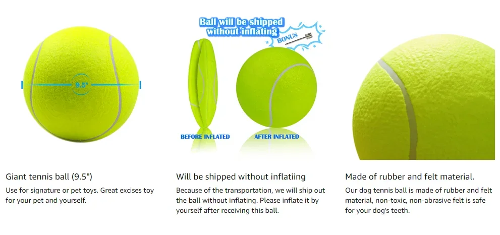 Juguetes para masticar para perros de 24cm, pelota de tenis, juguetes grandes para mascotas, pelota divertida para deportes al aire libre, regalo con agujas inflables, juguetes para perros grandes