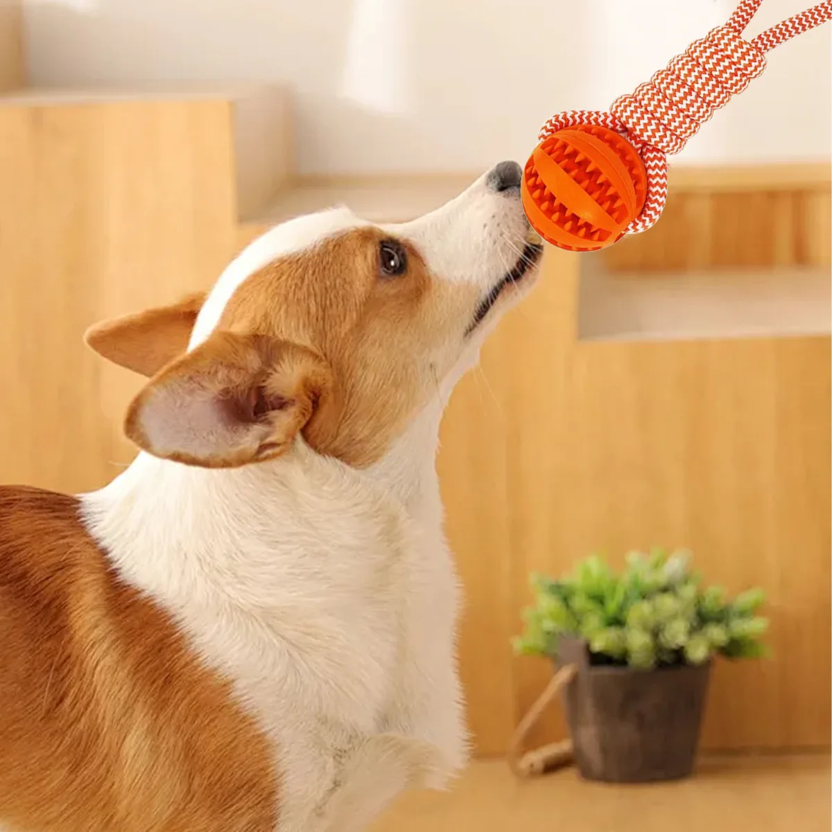 Juego de juguetes para masticar para perros de primera calidadSolución 3 en 1 para cuidados dentales y aburrimiento para masticadores agresivosCaracterística:Poder de limpieza de los dientesLa superficie texturizada de bola de sandía + las fibras de cuerda de algodón reducen la placa y refrescan el aliento.Estimulación mentalLa bola dispensadora de golosinas mantiene a los perros entretenidos durante horas (comentos con croquetas)Durabilidad de servicio pesadoEl material TPR no tóxico soporta más de 50 kg de fuerza de mordida, la cuerda 100% algodón resiste el deshilachadoUso para múltiples mascotasPerfecto para cachorros de dentición y perros adultos de menos de 80 libras.