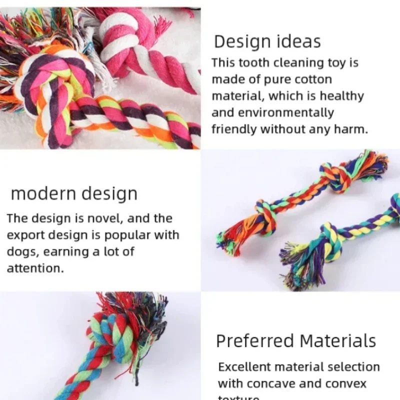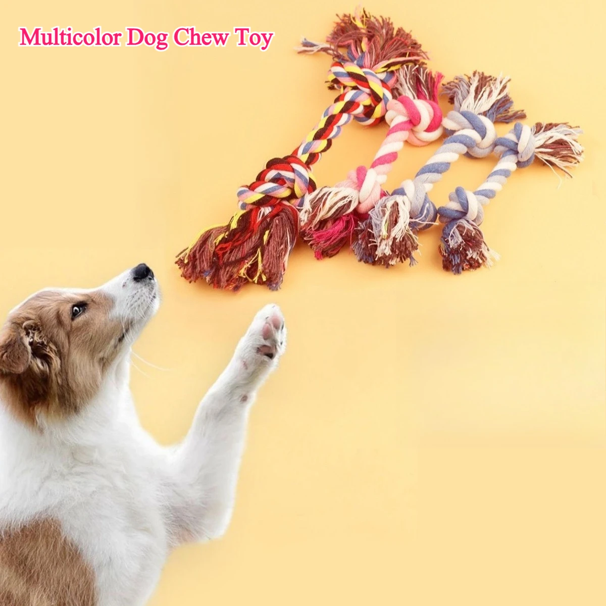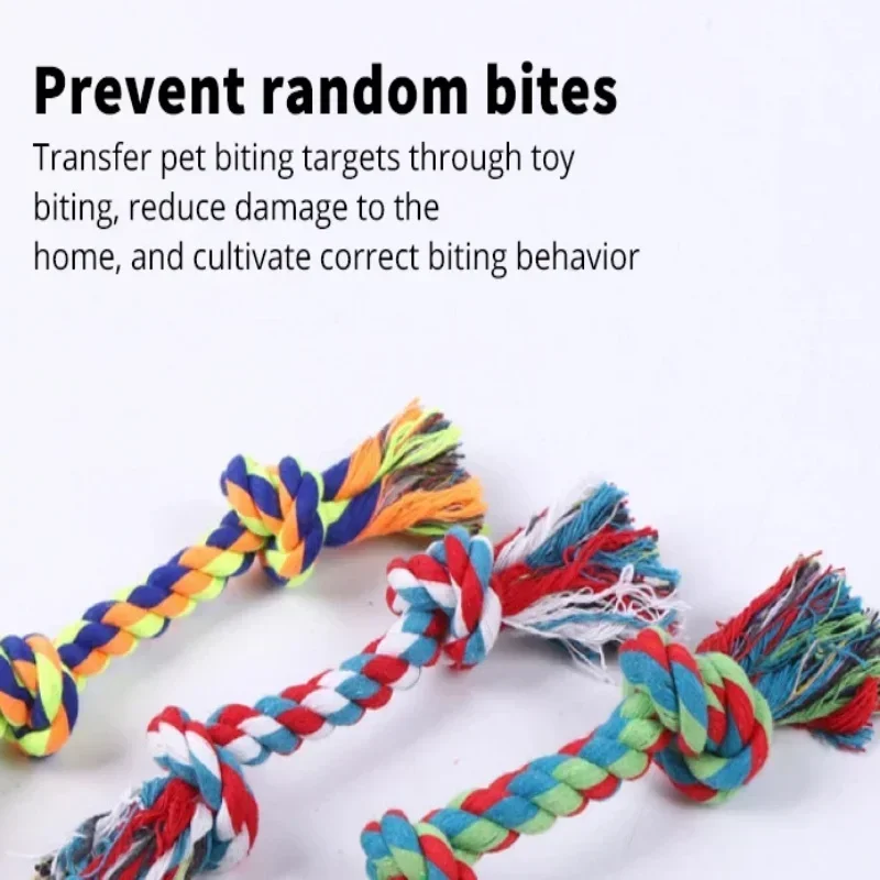 Juguete para masticar con cuerda de algodón duradero: diseño de nudo seguro para cachorros, compañero de dentición de perro colorido y no tóxico para jugar en casa